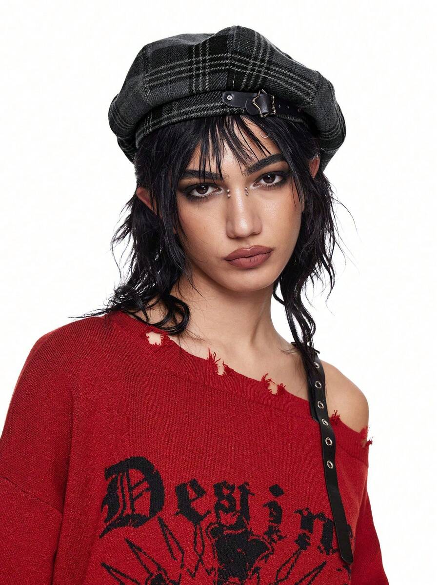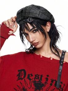 Grunge Punk قبعة بيريه نسائية عصرية بنجمة خماسية الأضلاع مربعة 1 قطعة