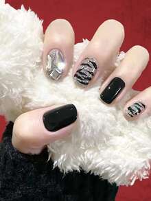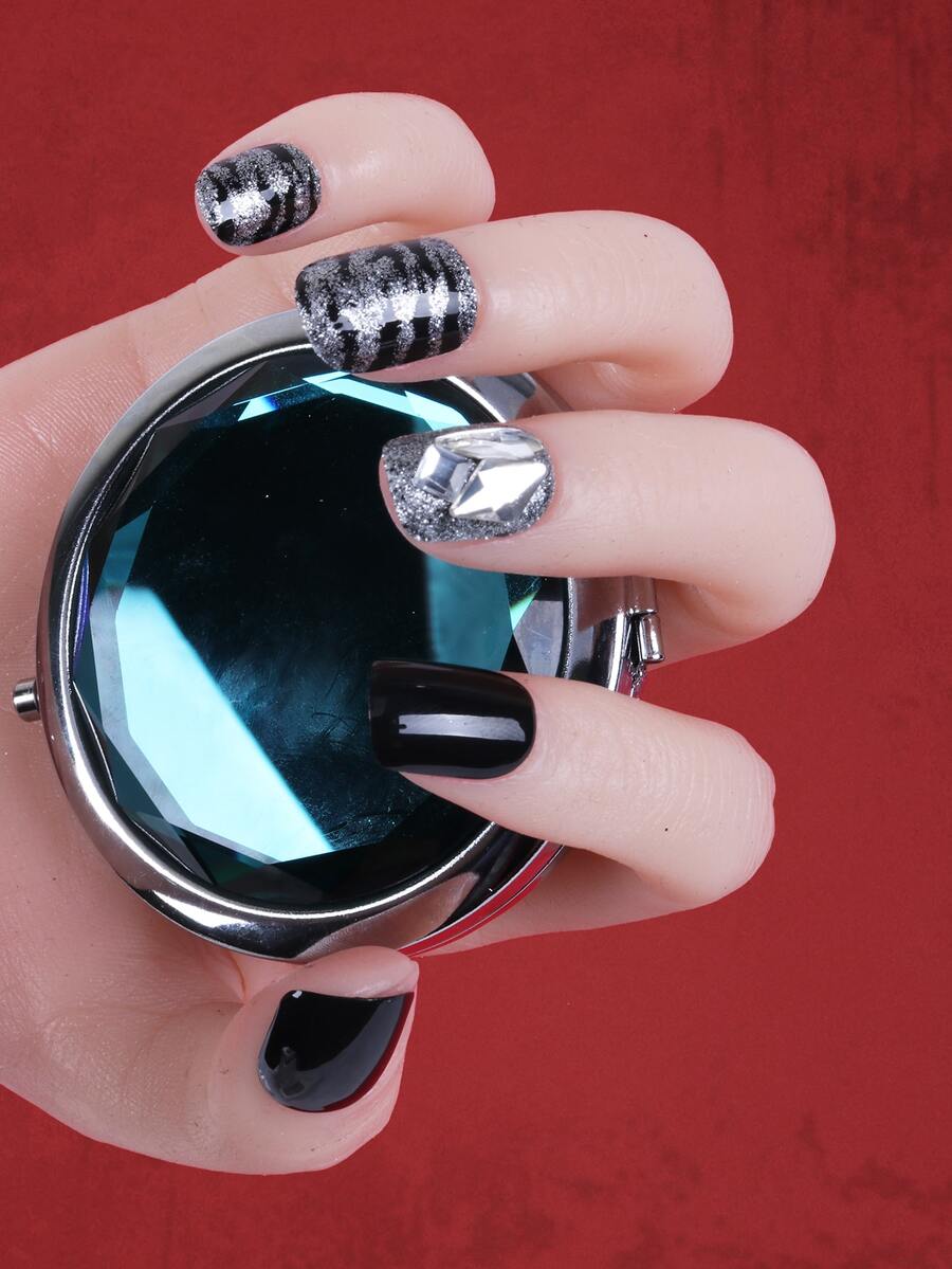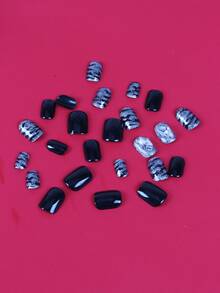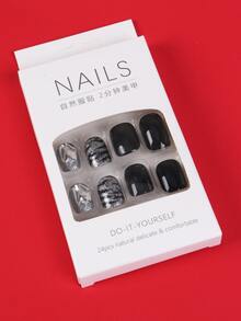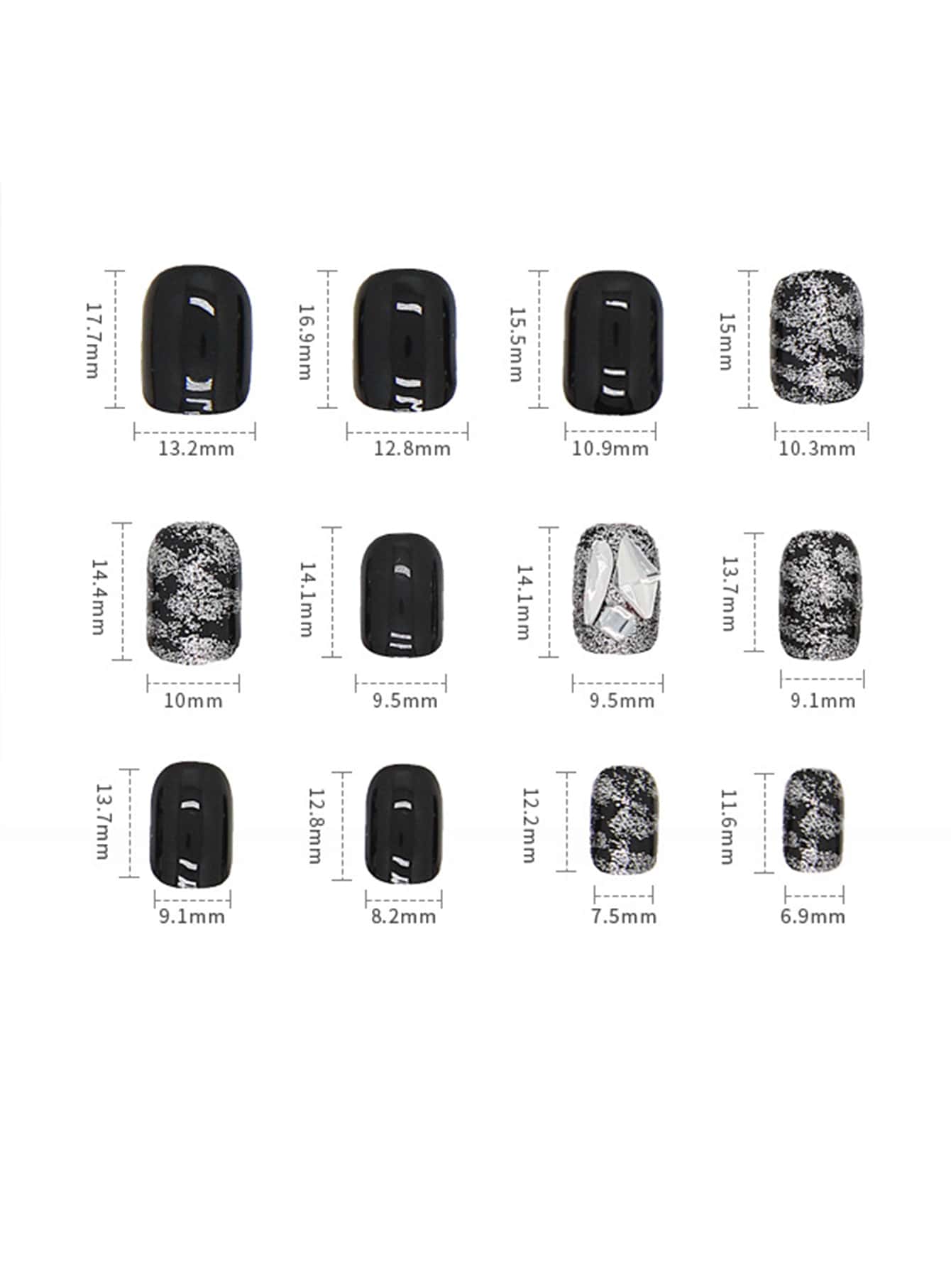 Grunge Punk 24 قطعة لامع أظافر اصطناعية و ورقة واحدة شريط