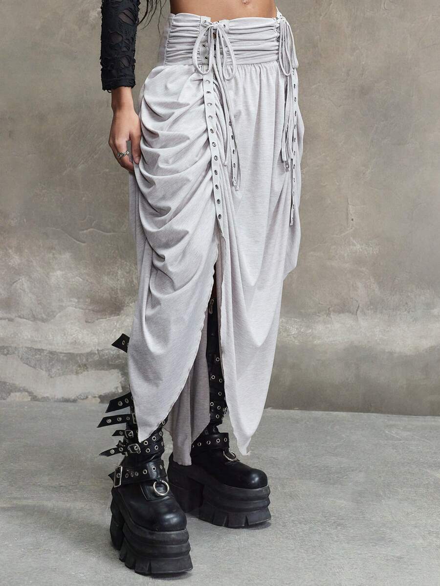 Grunge Punk تنورة ضيقة الخصر مشوهة ومهلهلة بخصر مرباط وهيكل غير متماثل