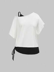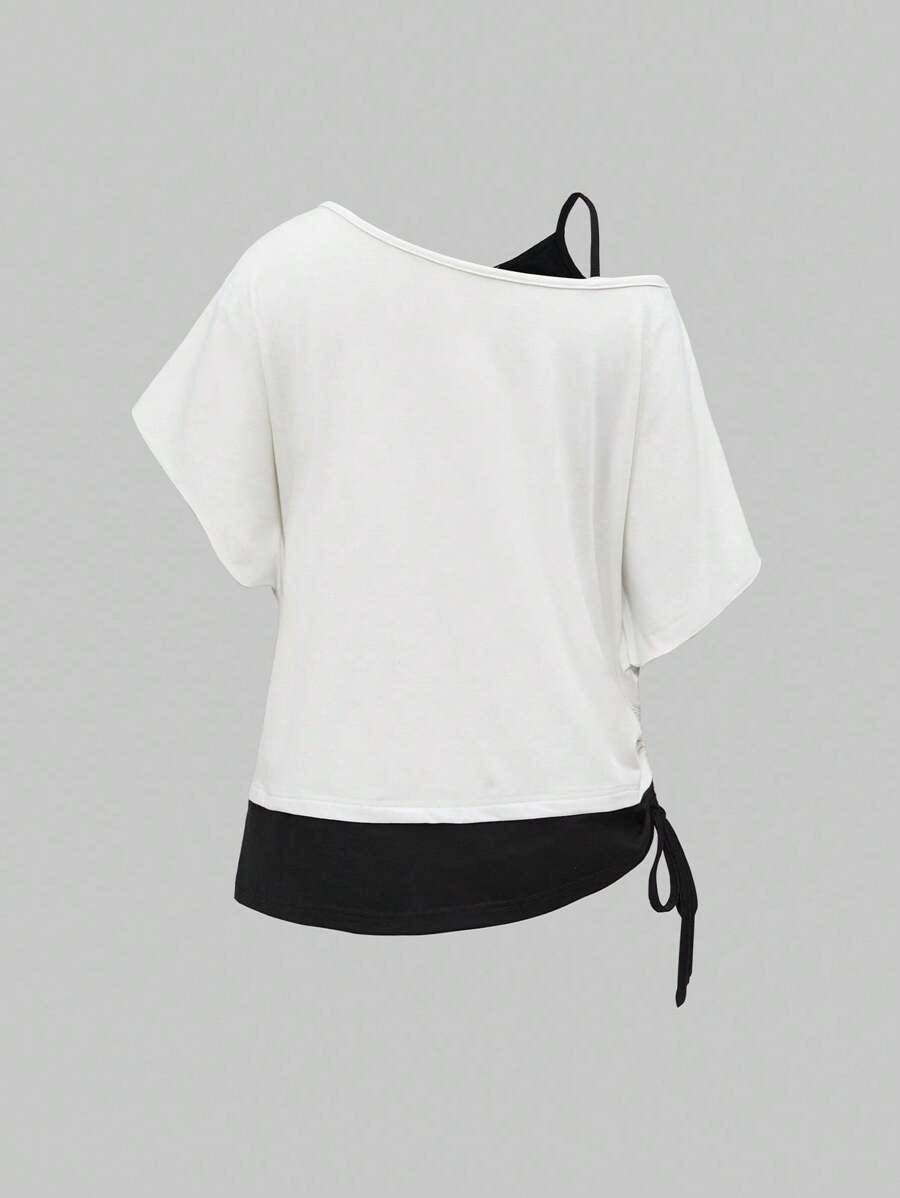 Grunge Punk تي شيرت أسيمتري فضفاض ملون باللونين الأسود والأبيض بطراز بانك جرانج