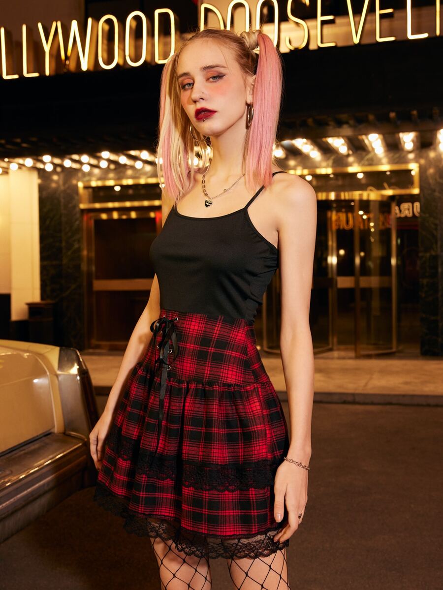 Grunge Punk فستان بلايزر الكامي الأشبه بالدانتيل مربوط برباط أمامي من بطانة مختلفة مزين بحافة دانتيل
