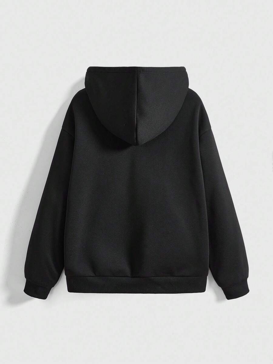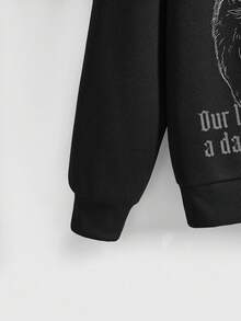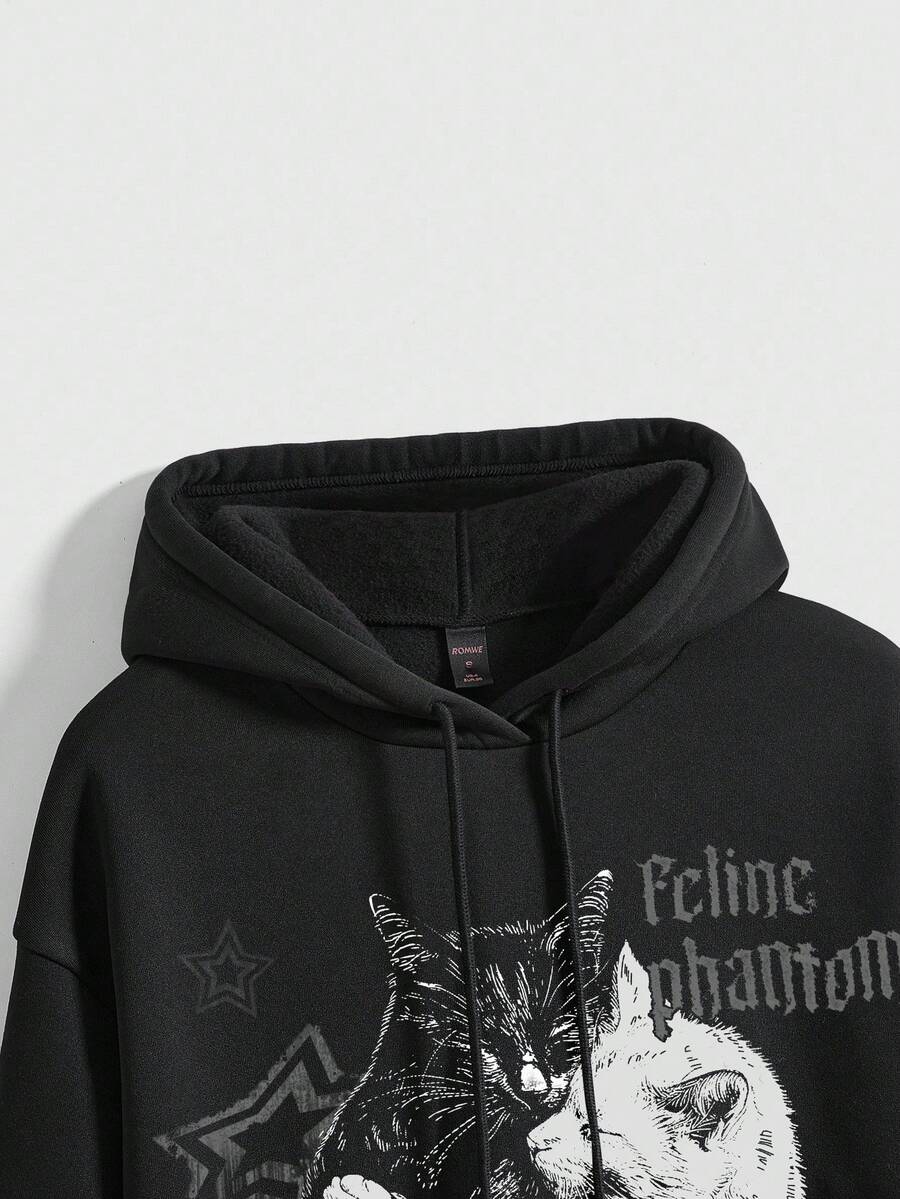 Grunge Punk هودي فضفاض بطبعة نجمة وقطة مرتبطة بطراز Y2K، مع جيب، أسود