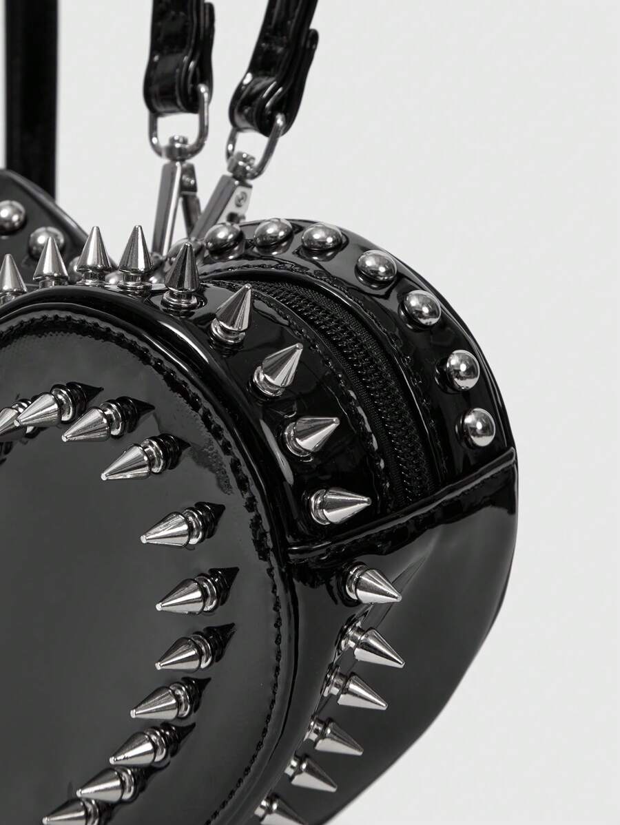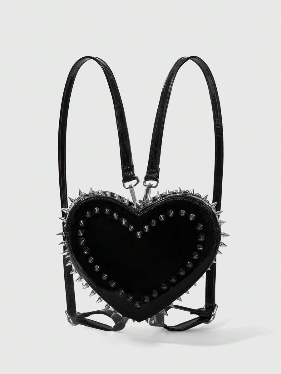 Grunge Punk شانتيل فتاة العصابة أسلوب الشارع بريبي Y2K مزين بالزناد حقيبة ظهر للنساء