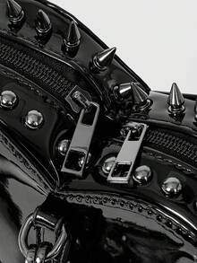 Grunge Punk حقيبة ظهر بنمط بانك ستريت كيوت بريبي Y2K مزينة بالزوايا للنساء، حقيبة مدرسية