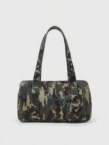 Grunge Punk حقيبة كتف عصرية كاجوال مطبوعة بطبعة الكاموفلاج مزينة بالراين