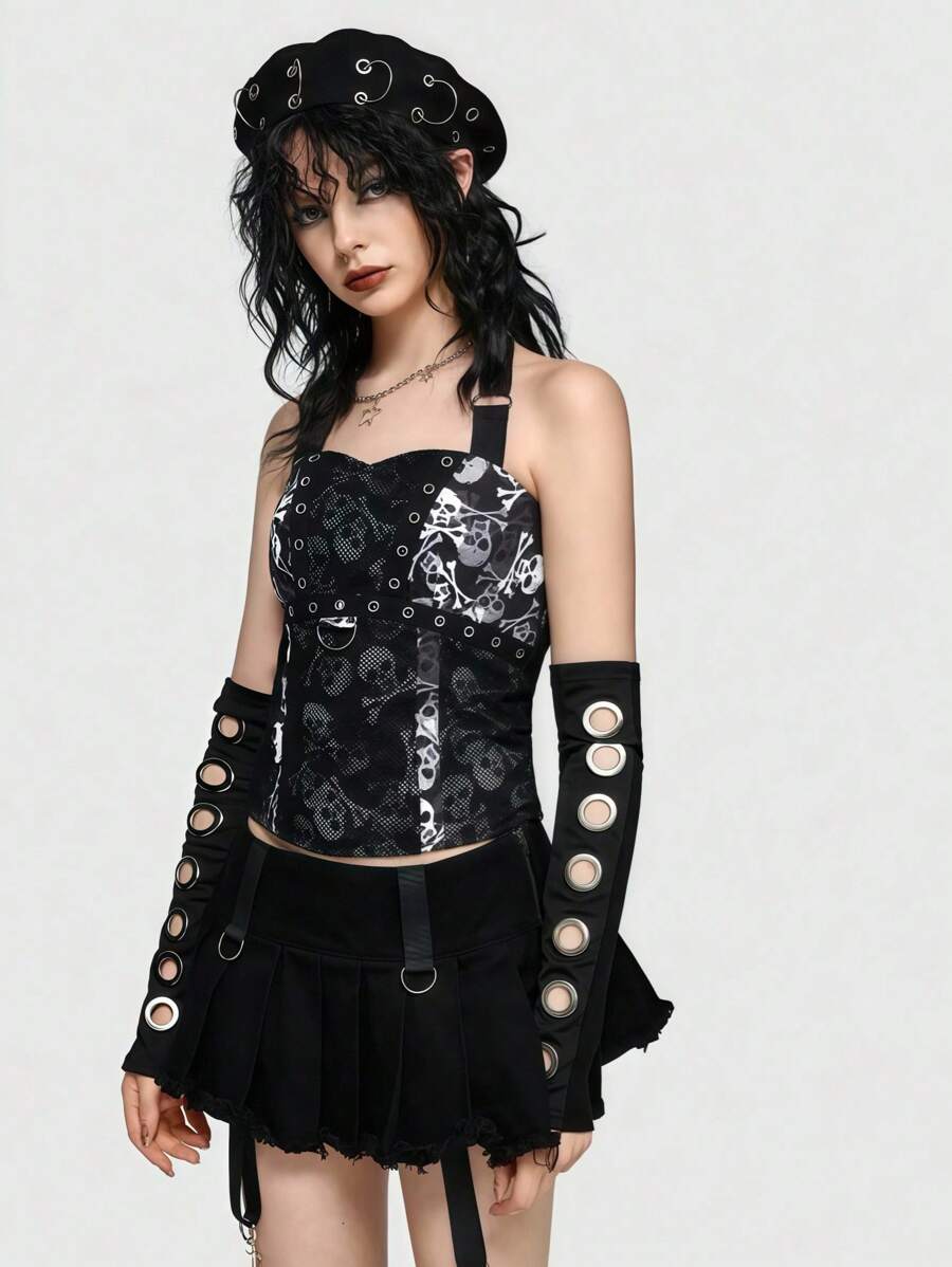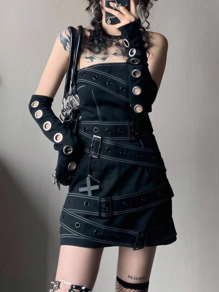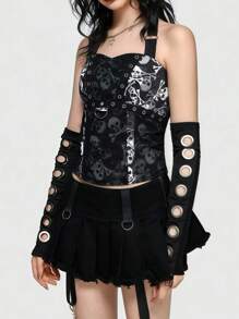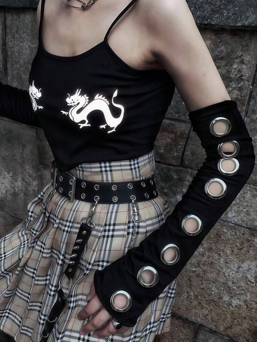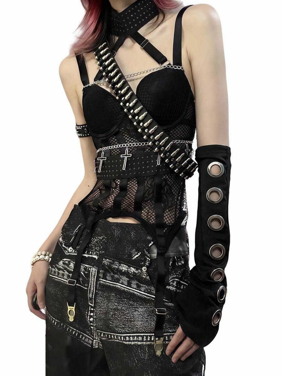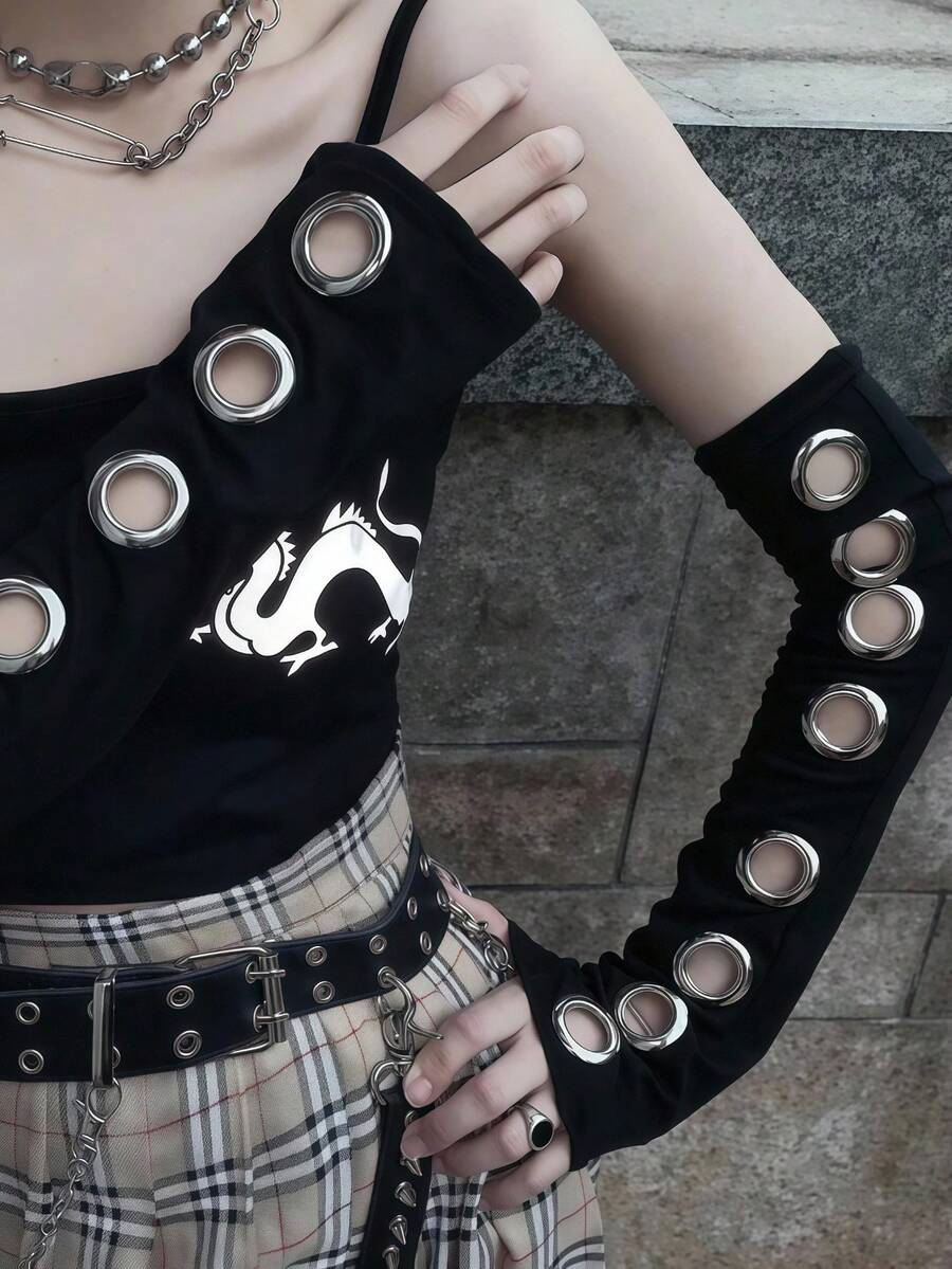 Grunge Punk أغطية ذراع معدنية سوداء مجوفة بطراز جوثيك، إكسسوارات شخصية بطراز بانك وشوارع عصرية مناسبة للجنسين للحفلات والتجمعات والهالوين