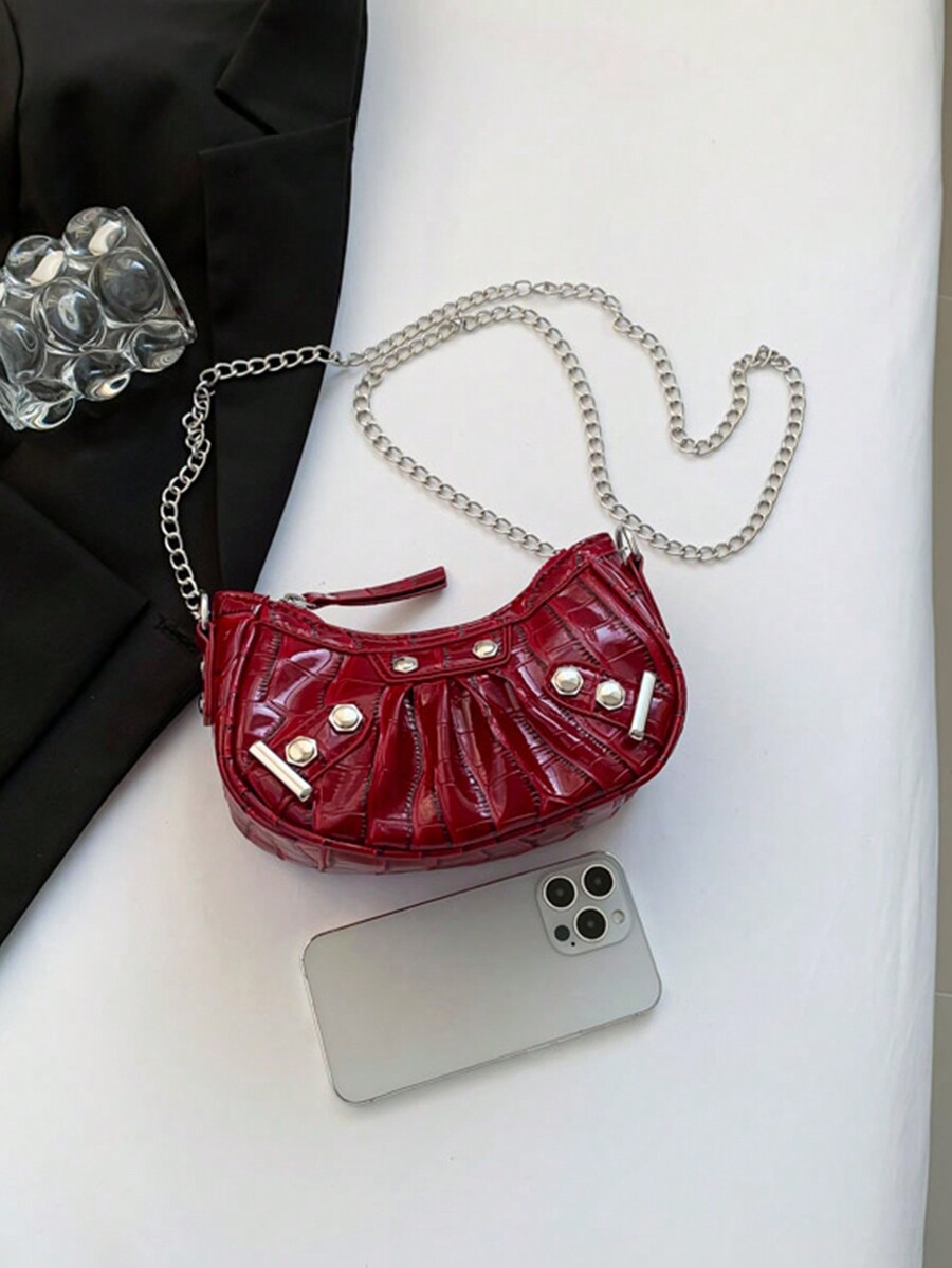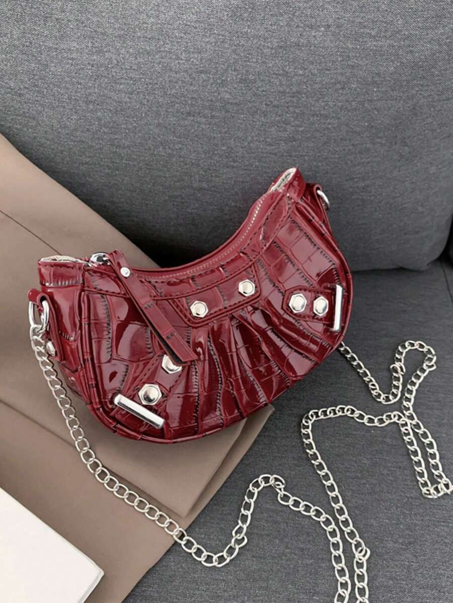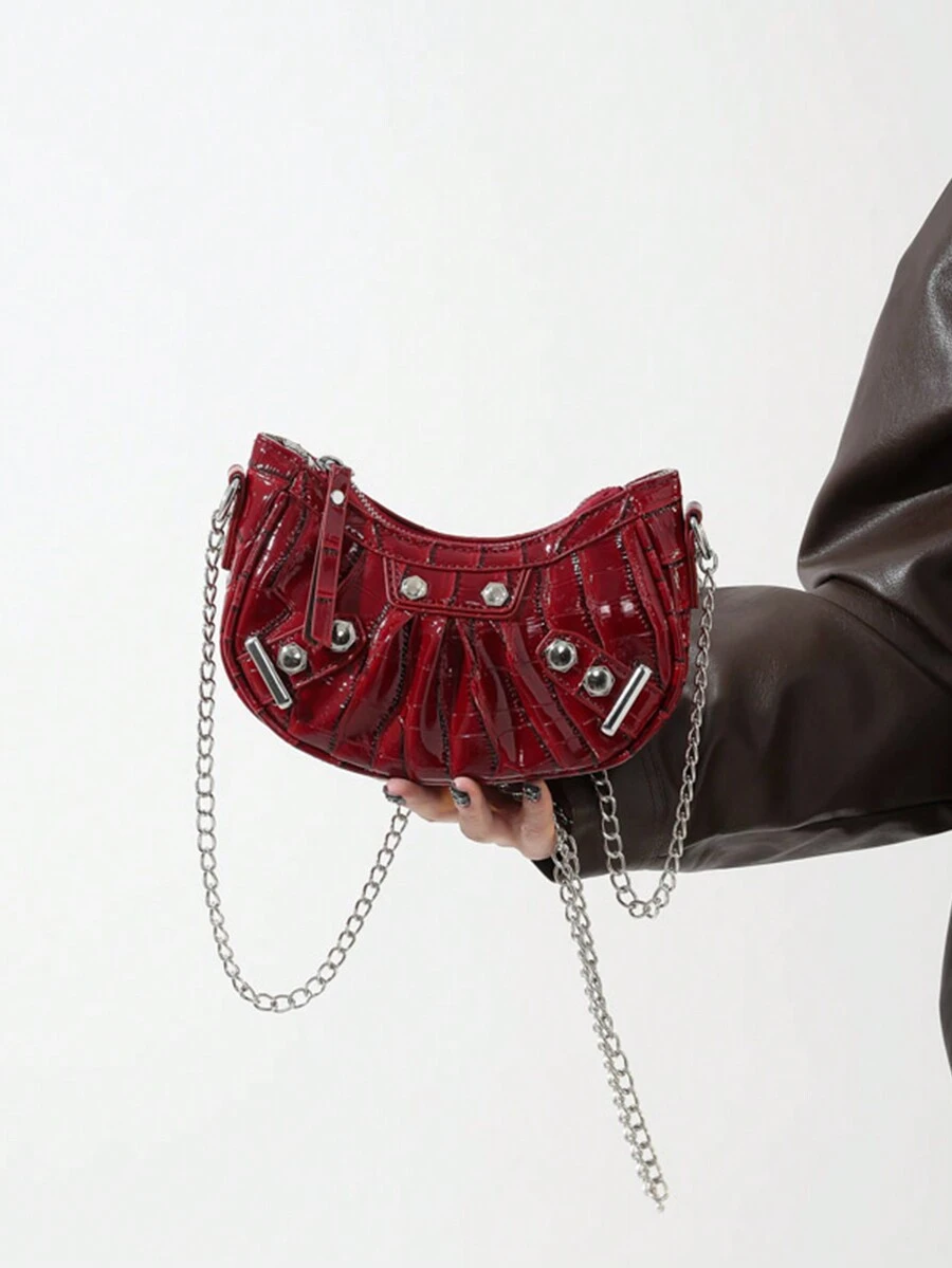 Grunge Punk حقيبة كتف بنمط السرحان الجوتي مع المسامير، حقيبة عبر الجسم أو حقيبة كتف موضة