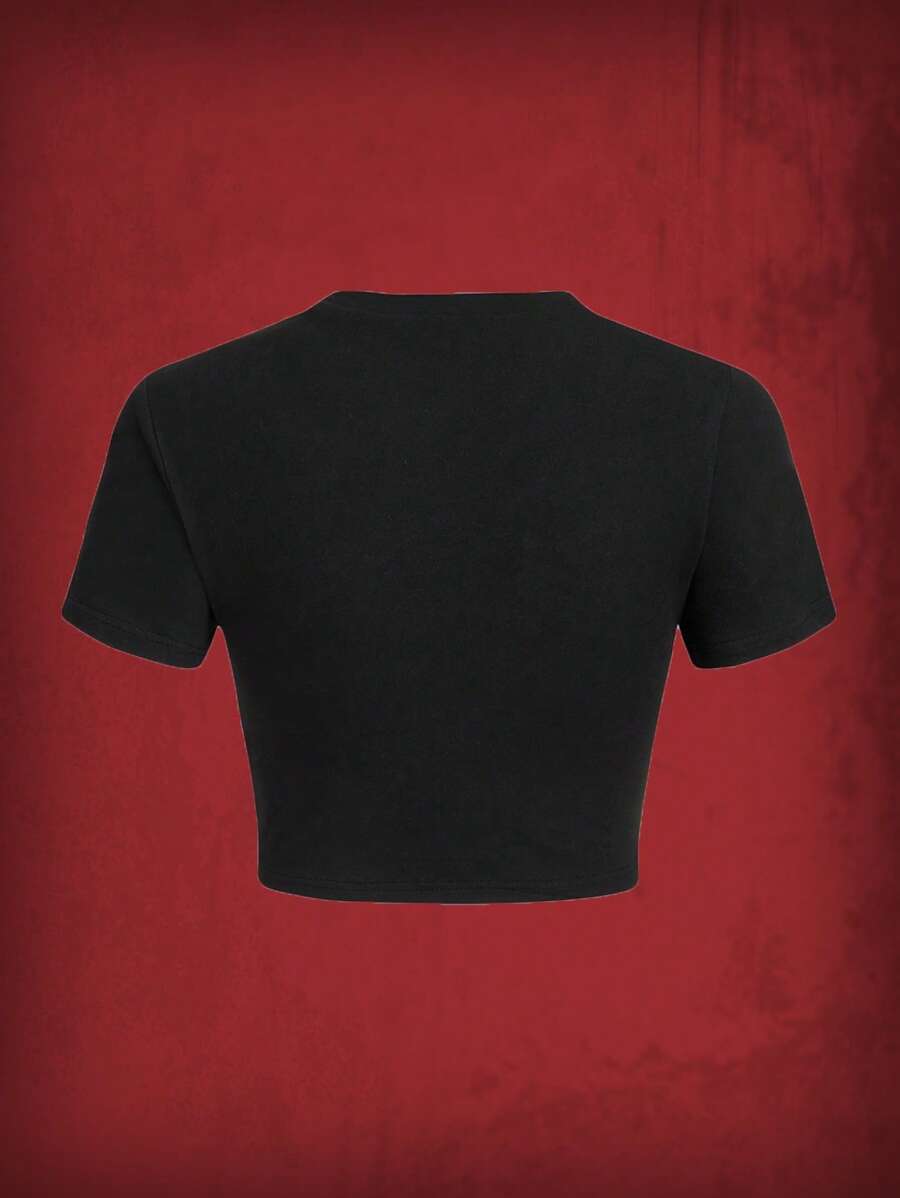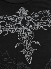 Grunge Punk تي شيرت قصير رسم حجر الراين