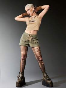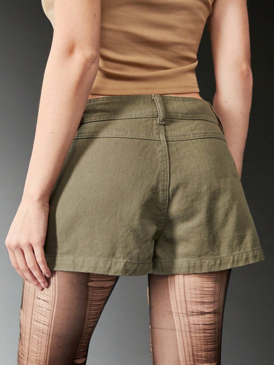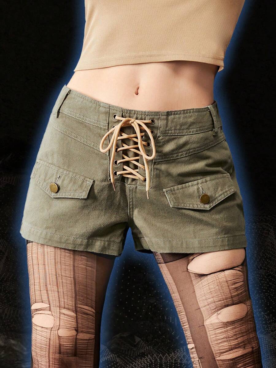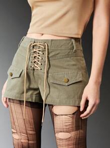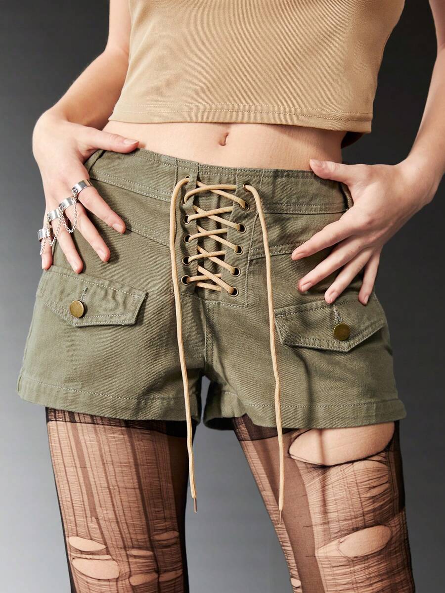 Grunge Punk شورت دنيم رباط بتفاصيل رفرف