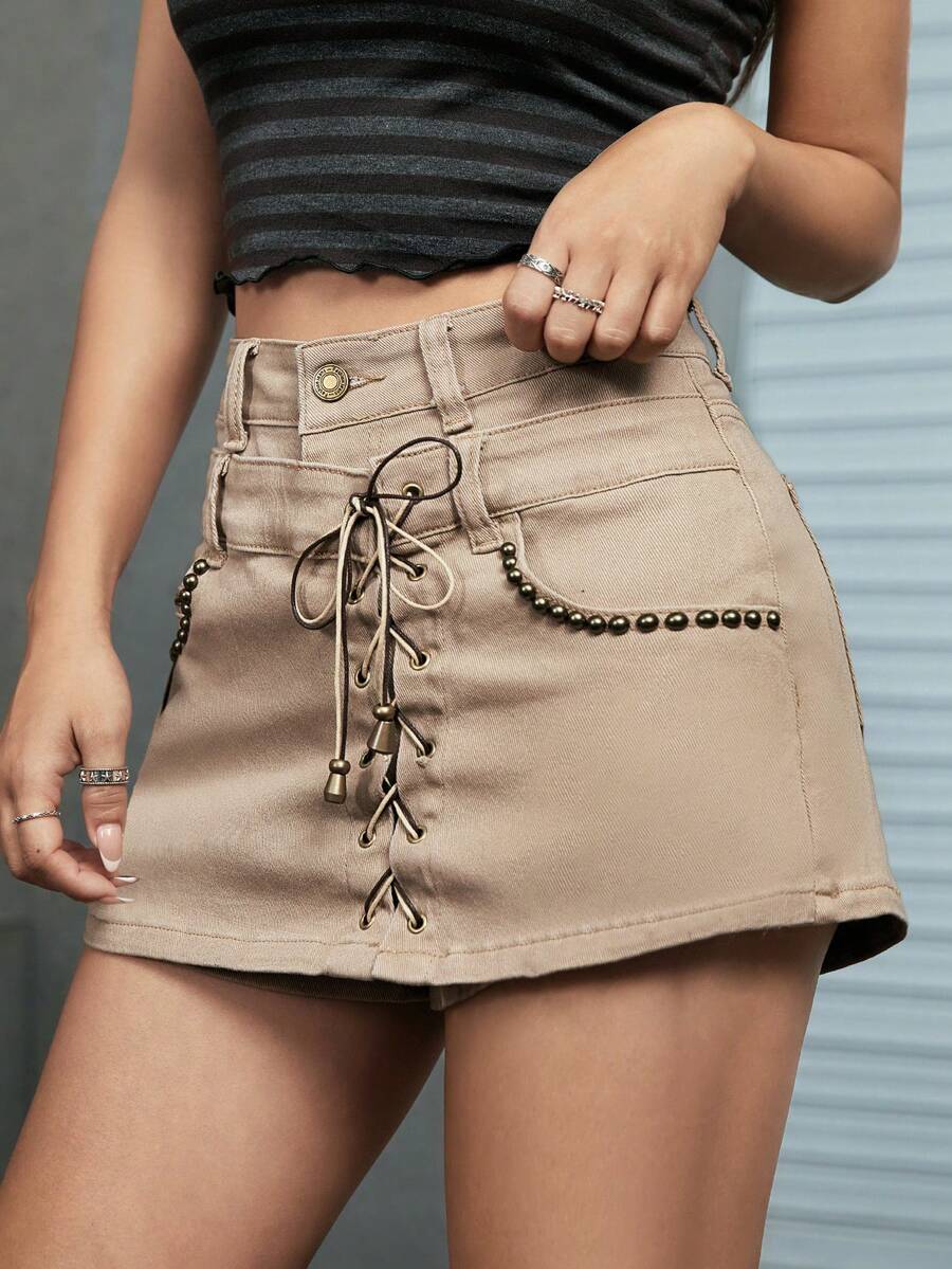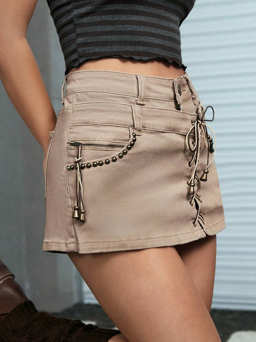 Grunge Punk سكورت جينز رباط امامي
