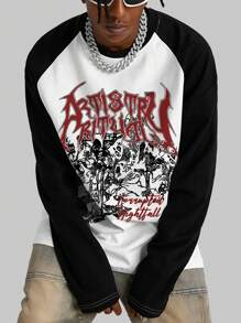 Grunge Punk تي شيرت رجالي بأكمام راجلان مطبوع عليه حرف، للمدرسة، للخريف، بطراز عام 2000