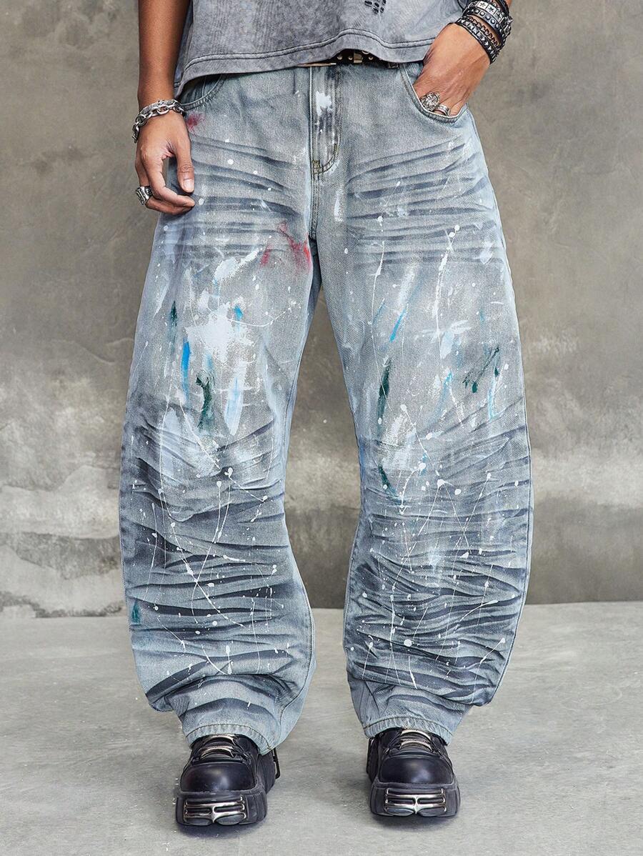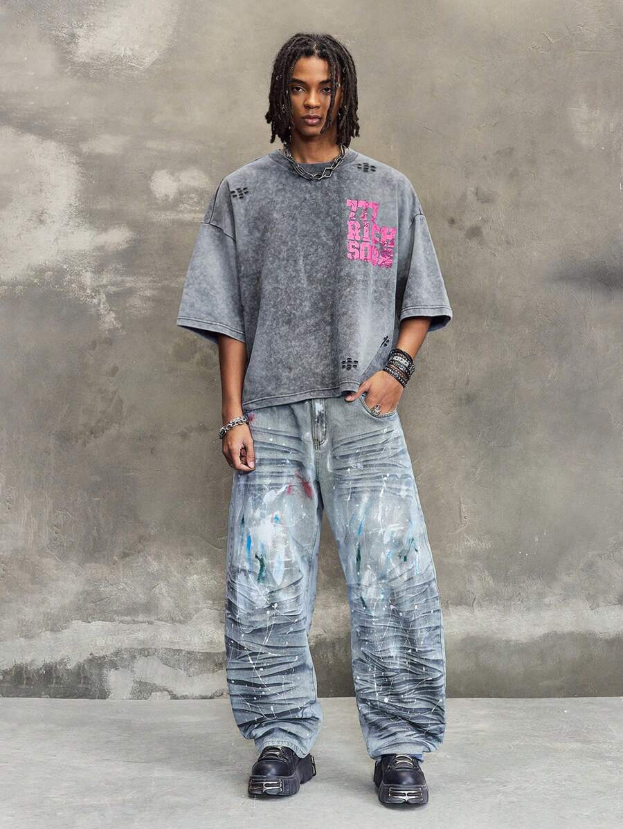 Grunge Punk بنطلون جينز فضفاض مناسب للصيف