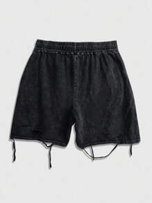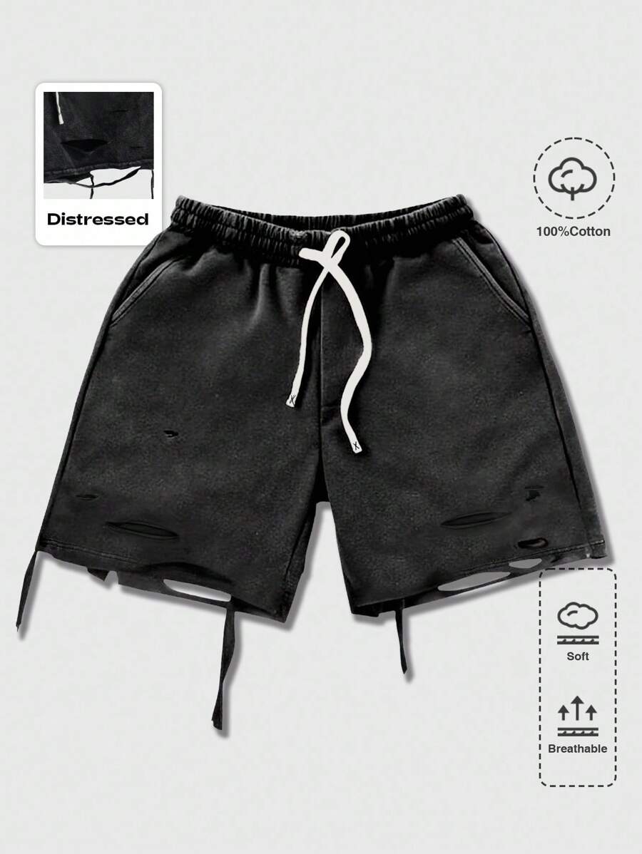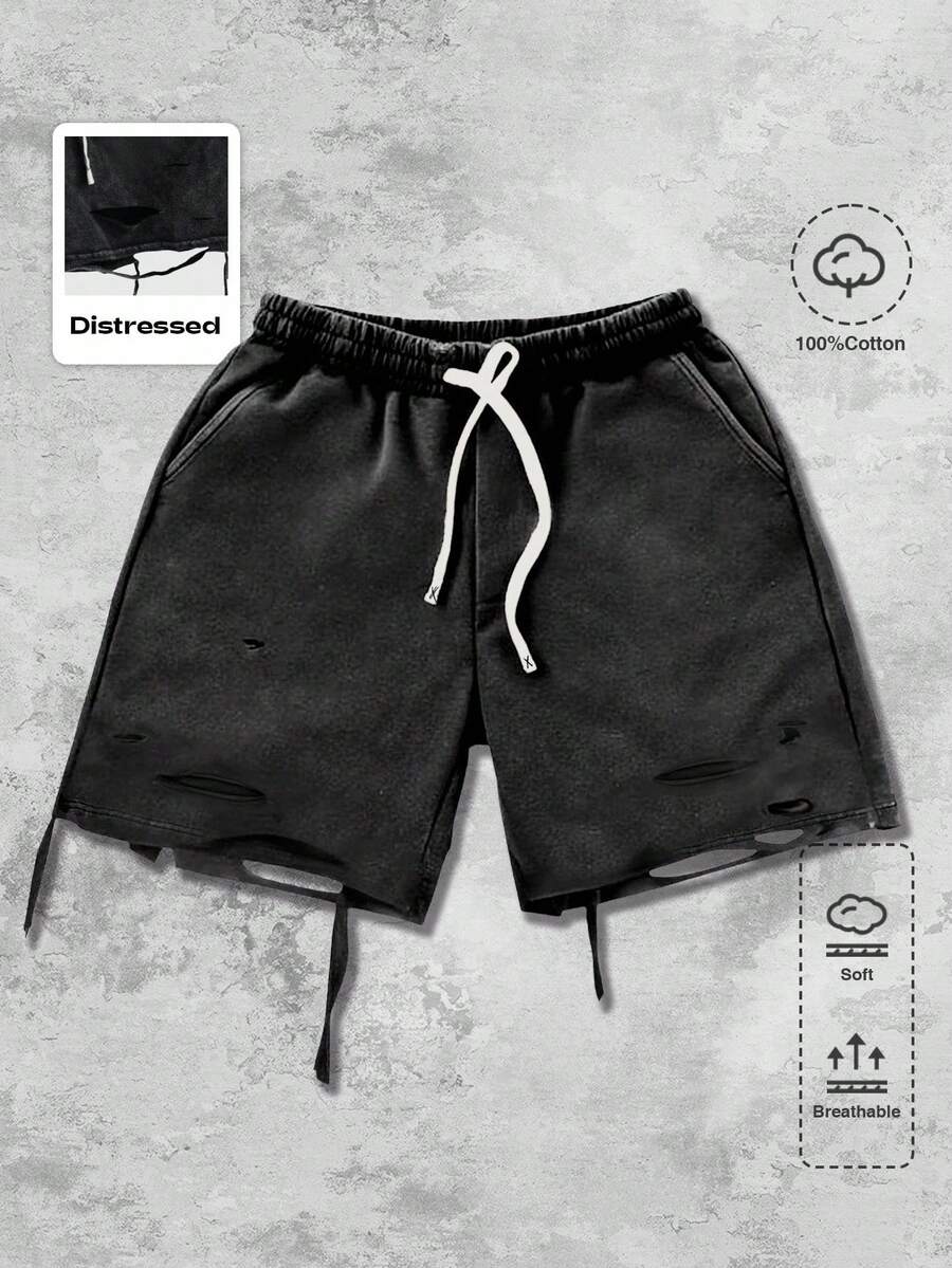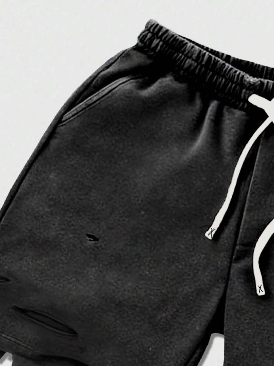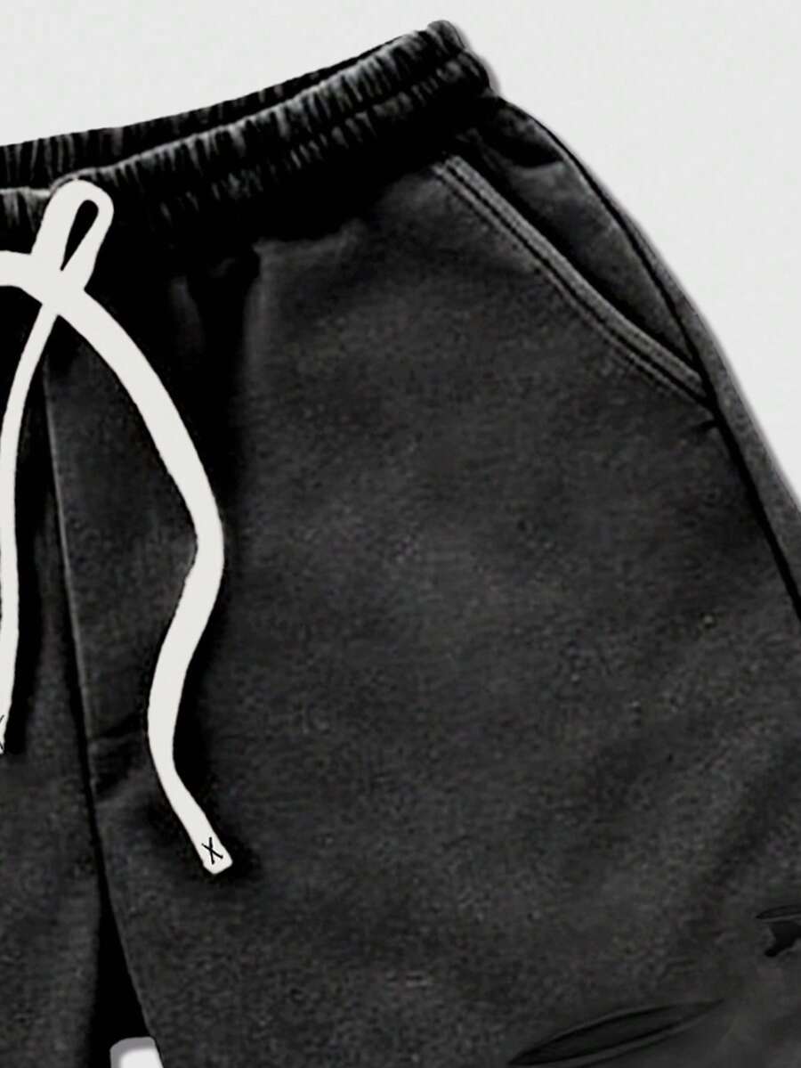 Grunge Punk شورت رجالي فضفاض بخصر رباط وجيوب مشوه