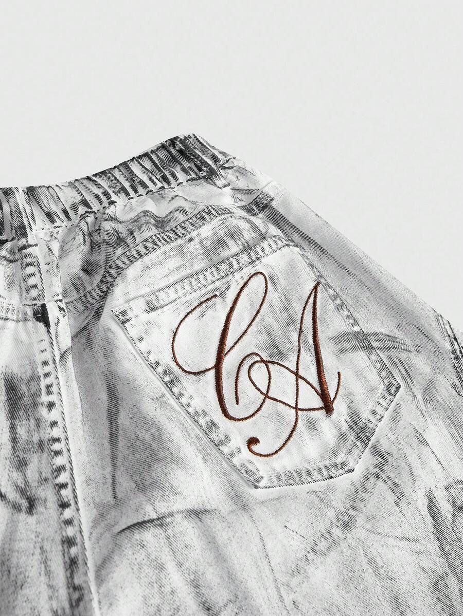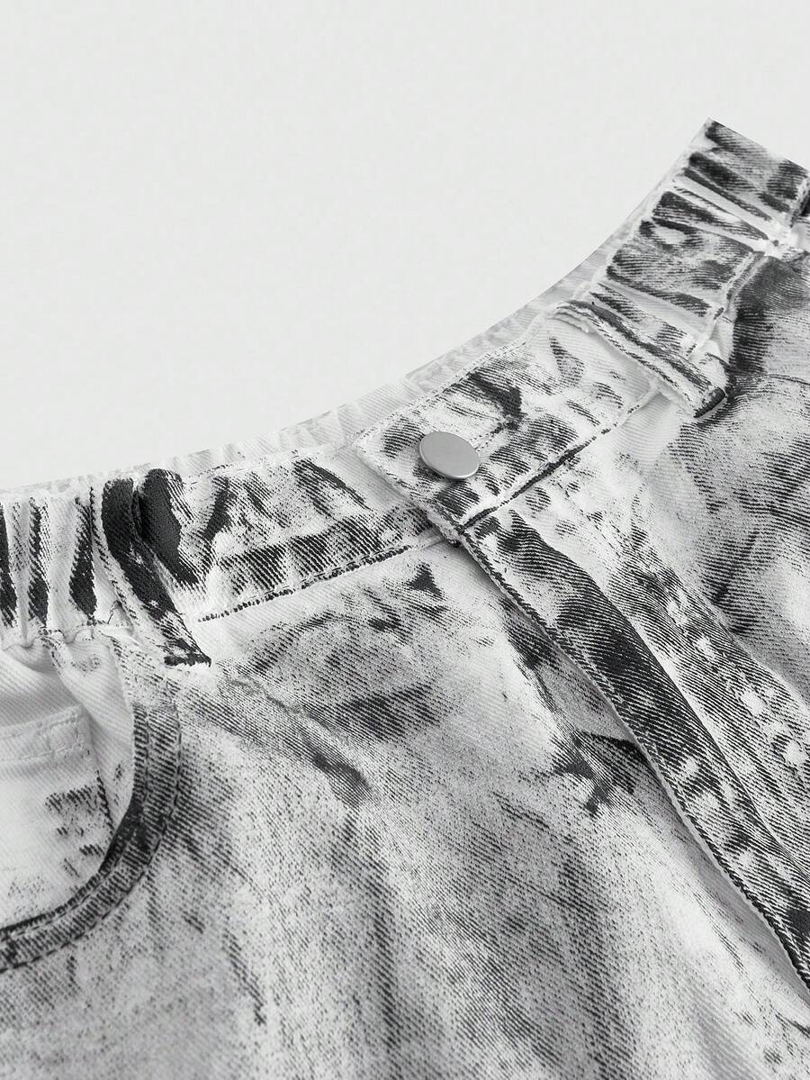 Grunge Punk بنطلون جينز رجالي واسع الساق مغسول ومبلى بالتآكل بطريقة عصرية