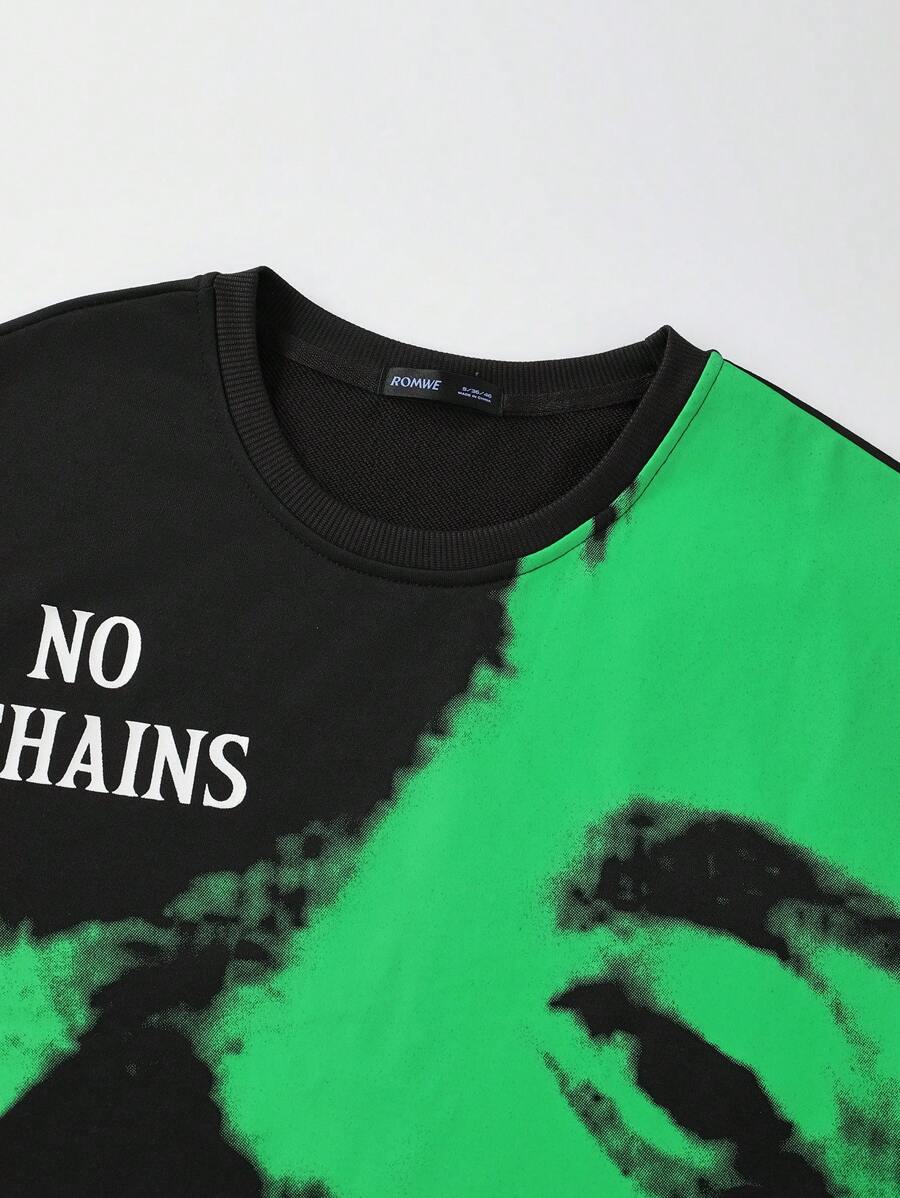 Grunge Punk تي شيرت أسلوب قصير بطبعة لرجال، بياقة منفوخة وجنب منسدل، موضة شارع رجعية