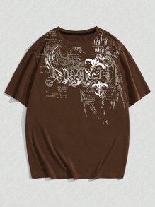 Grunge Punk ملابس علوية رجالية بياقة دائرية وأكمام قصيرة مطبوعة بطباعة جرافيك للارتداء اليومي العادي