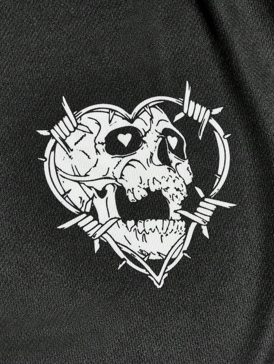 Grunge Punk قميص رجالي بأكمام قصيرة بطباعة حرف وشخصية كرتونية