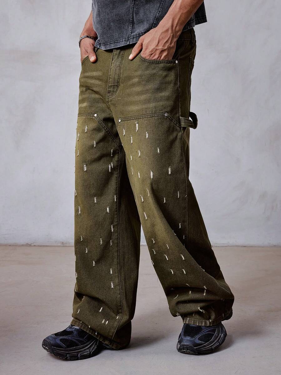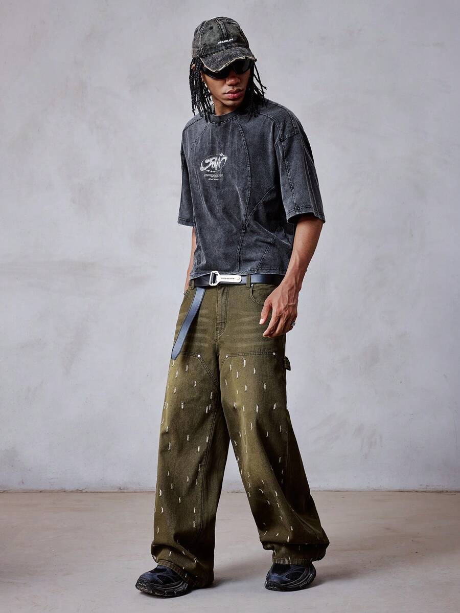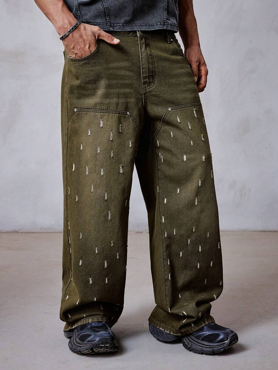 Grunge Punk بنطلون جينز كاجوال عادي وأنيق للرجال للاستخدام اليومي