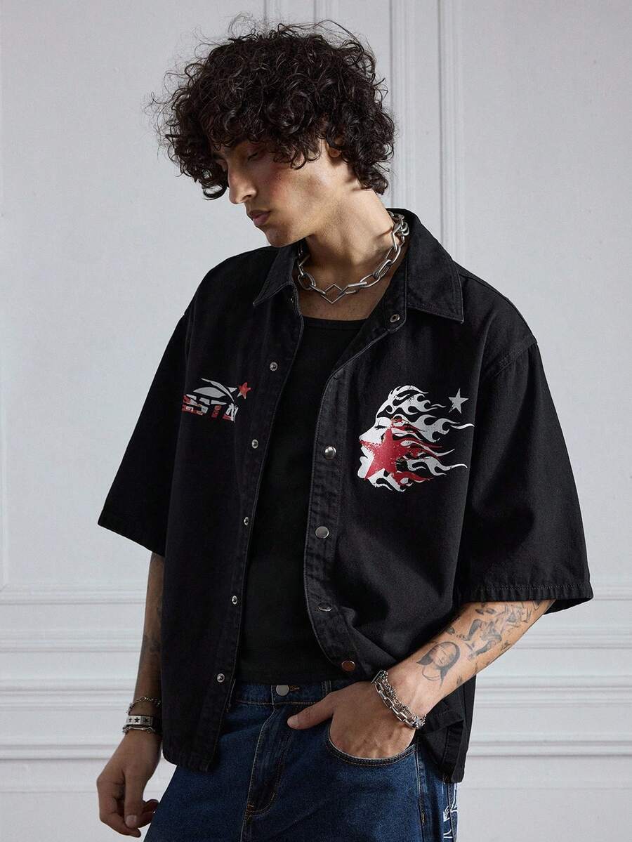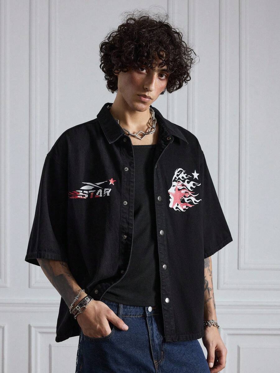 Grunge Punk قميص/جاكيت جينز بطراز الشارع لرجال بطراز روك الأنيق