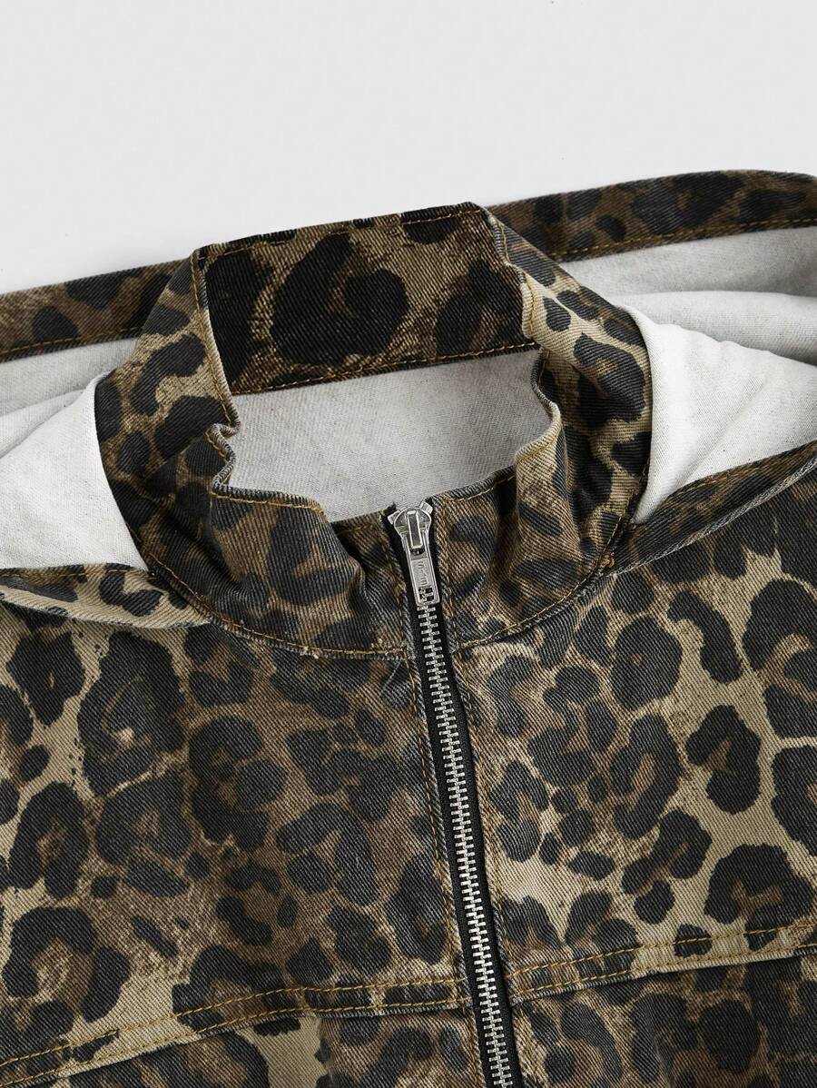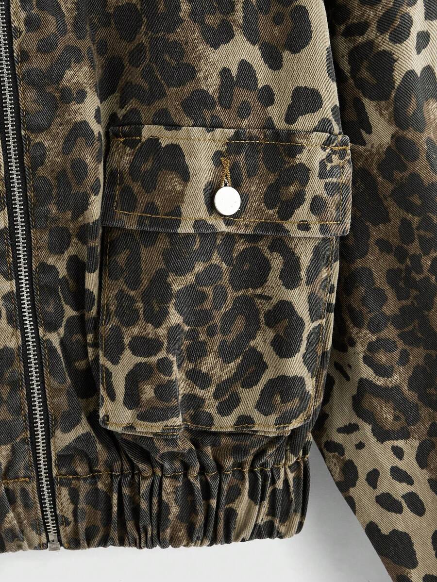 Grunge Punk جاكيت جينز للنساء بجيب شحن مطبوعة بنمط النمر الشوارع