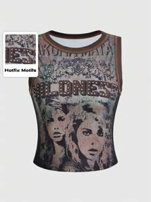 Grunge Punk ملابس علوية خزانة قياس كبير مزينة بالراين ستون بطباعة غربية بانك
