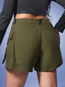 Grunge Punk بنطلون قصير جيب جانبي قلاب كارجو مقاس كبير