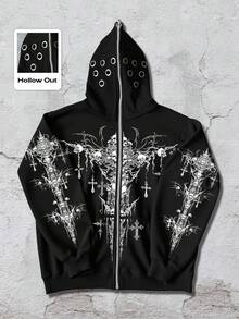 Grunge Punk جاكيت هوديي مبطنة بالحرارة مزودة بسحاب، طراز شارع بانك، خريف/شتاء