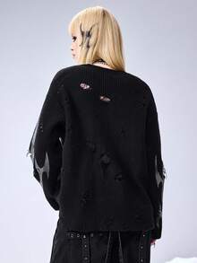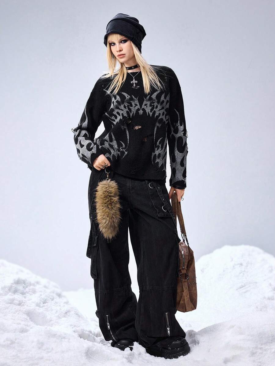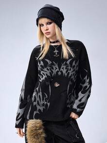 Grunge Punk بلوزة بطبعة أشواك بتصميم فضفاض بطراز بانك
