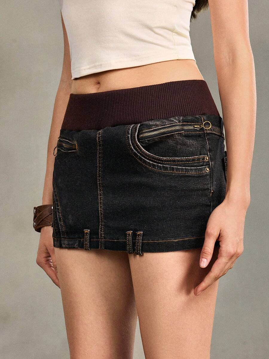 Grunge Punk تنورة قصيرة ملفوفة بنمط لحمة الحليب ذات الخصر المنخفض للغاية بطراز كلاسيكي جذاب