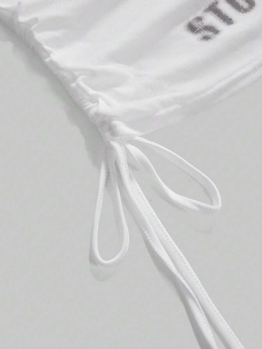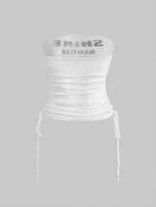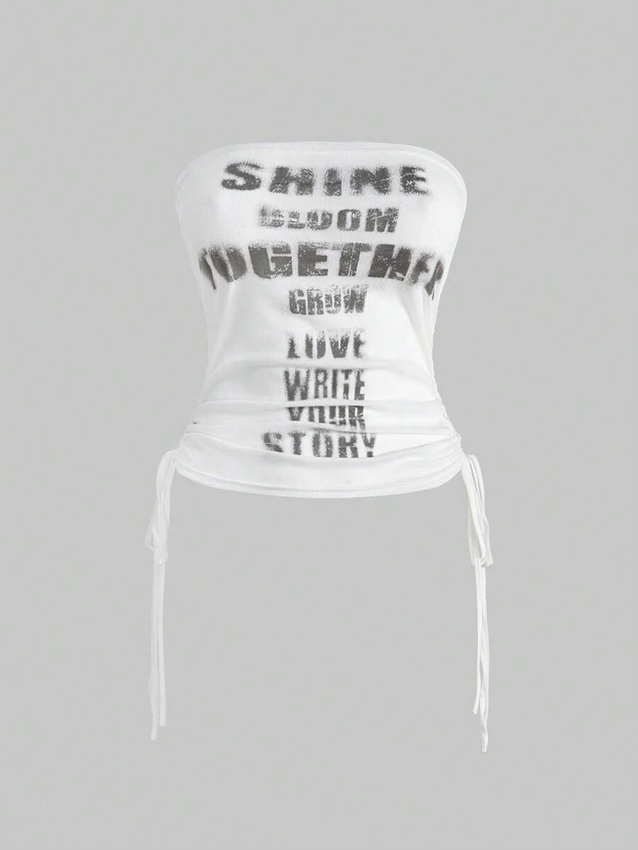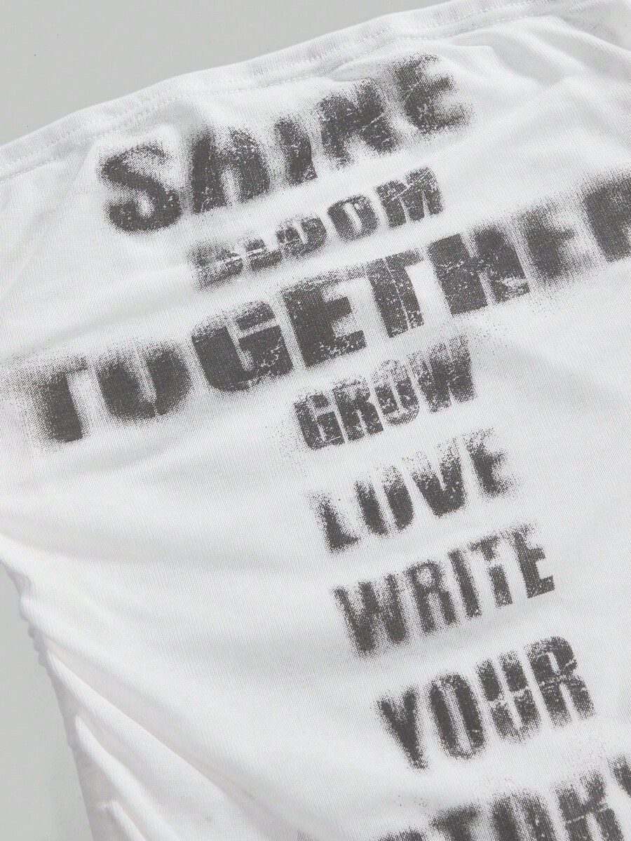 Grunge Punk ملابس علوية قصير شفاف مثير للنساء مع طباعة صليب وحرف رومانسي بطرف مطوي بأسلوب بانك