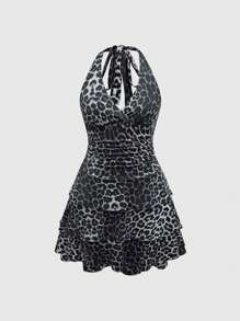 Grunge Punk فستان ضيق الفتاة الجذابة ذو الطبقات والحاشية المجعدة بطبعة نمر للحفلات