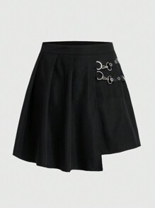 Grunge Punk تنورة منقوشة بثنيات ذات حافة غير متماثلة، مدرسة