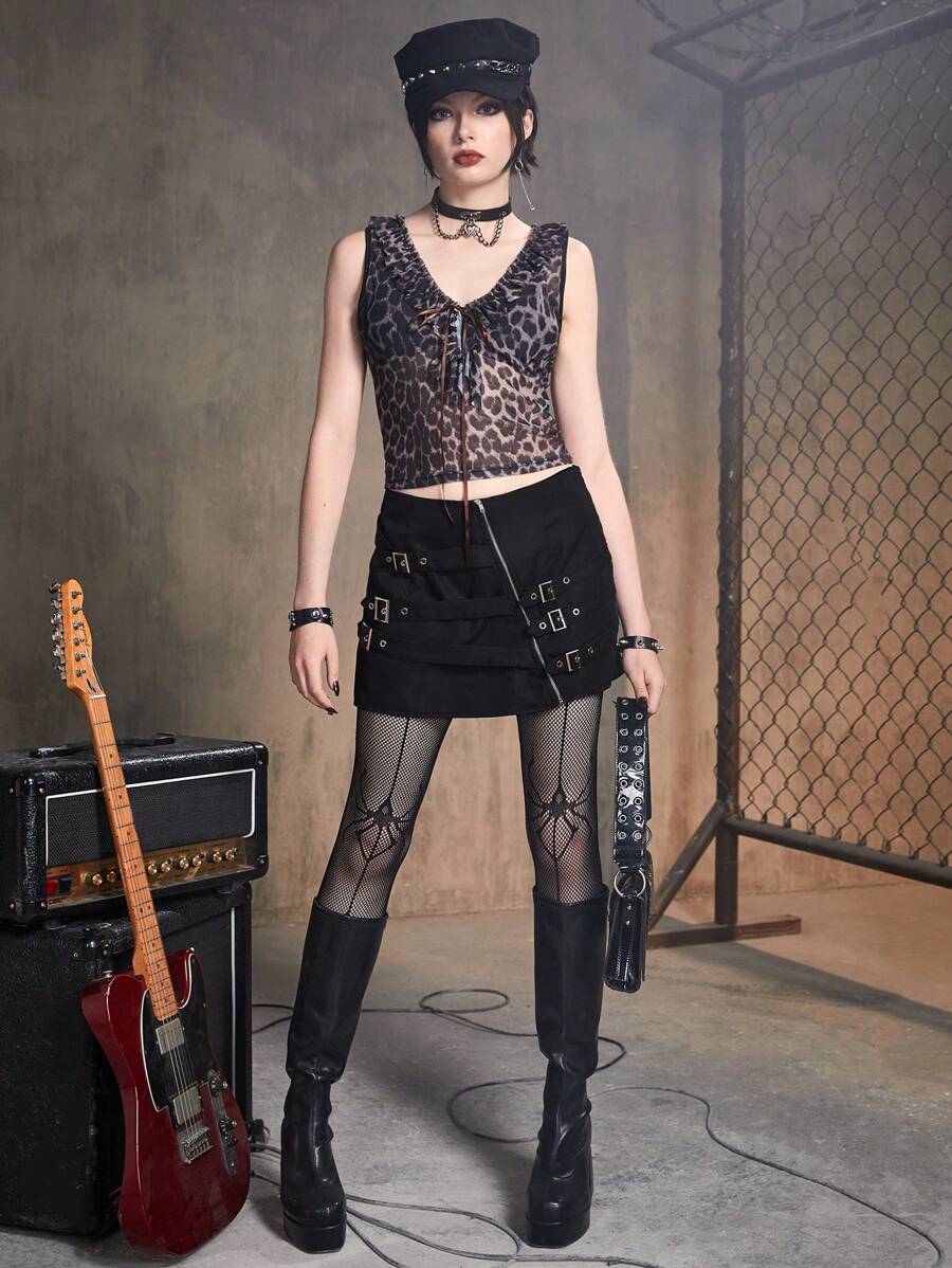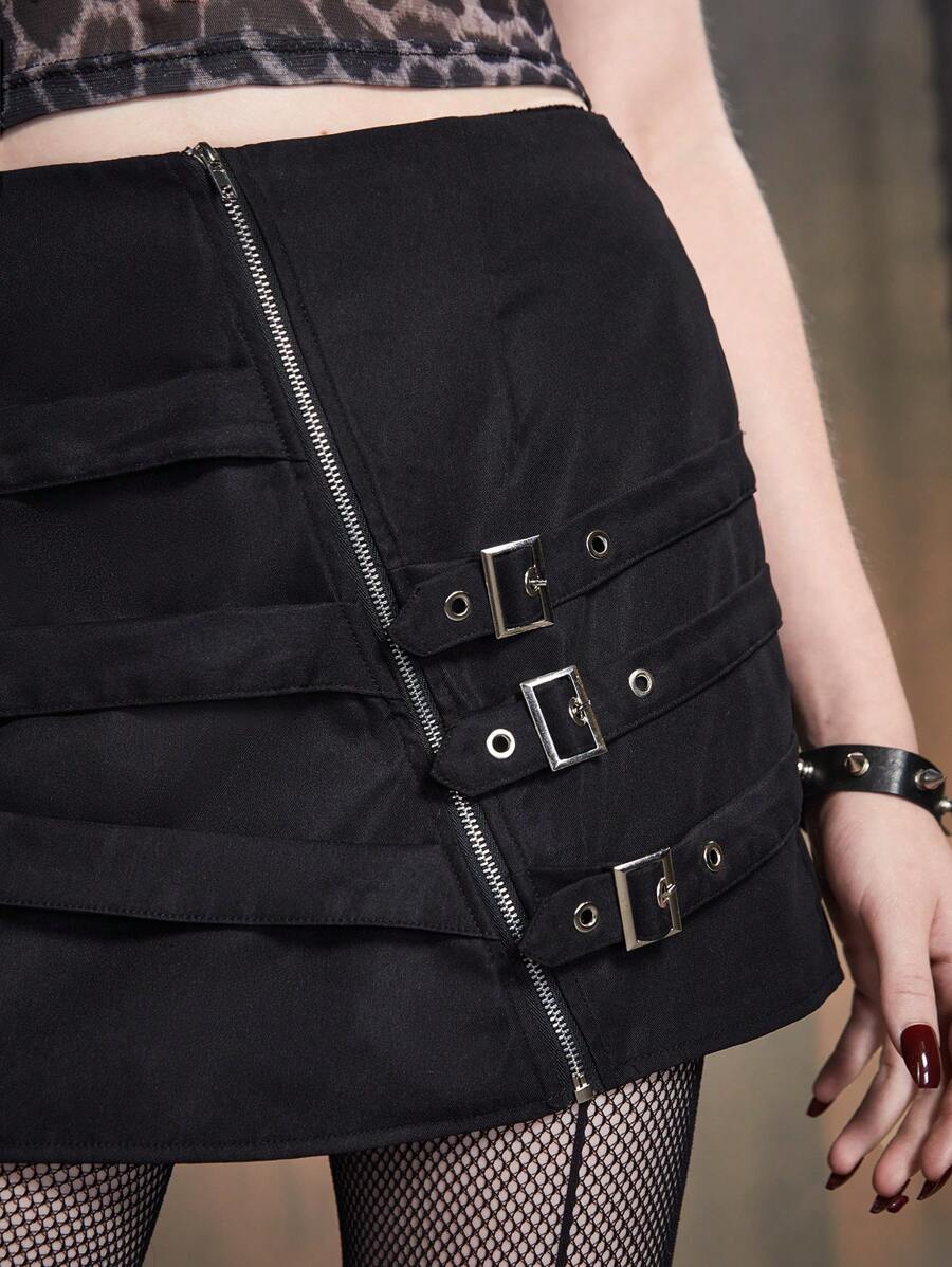 Grunge Punk تنورة موحدة اللون سستة فتحات حلقي معدني