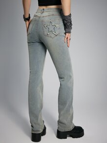Grunge Punk سراويل جينز نحيفة مطرزة بنجمة، المدرسة