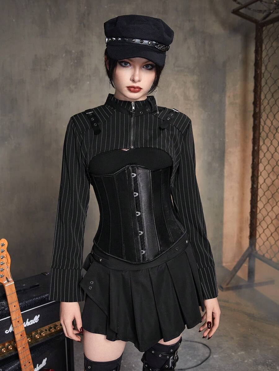 Grunge Punk لباس علوي قصير للغاية مخطط بدون صدرية كامي