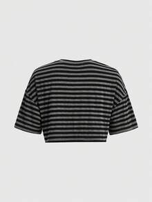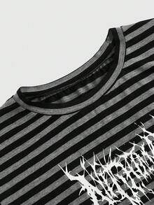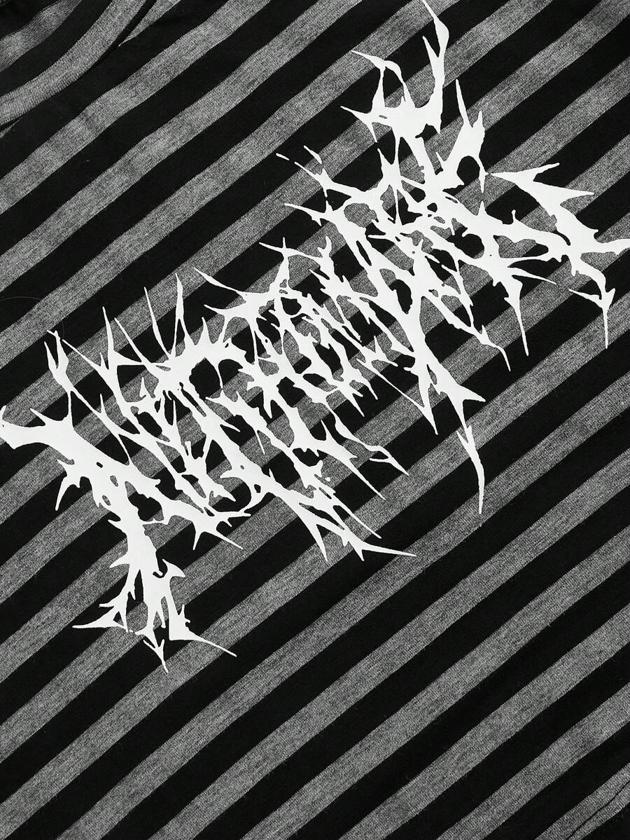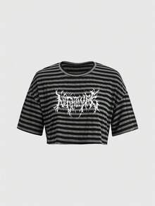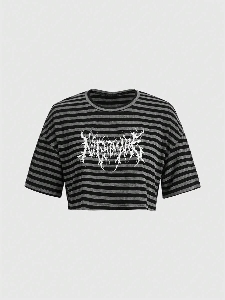Grunge Punk قميص T مقصوّر مخطط مطبوع عليه حروف بطراز بانك القمامة للنساء