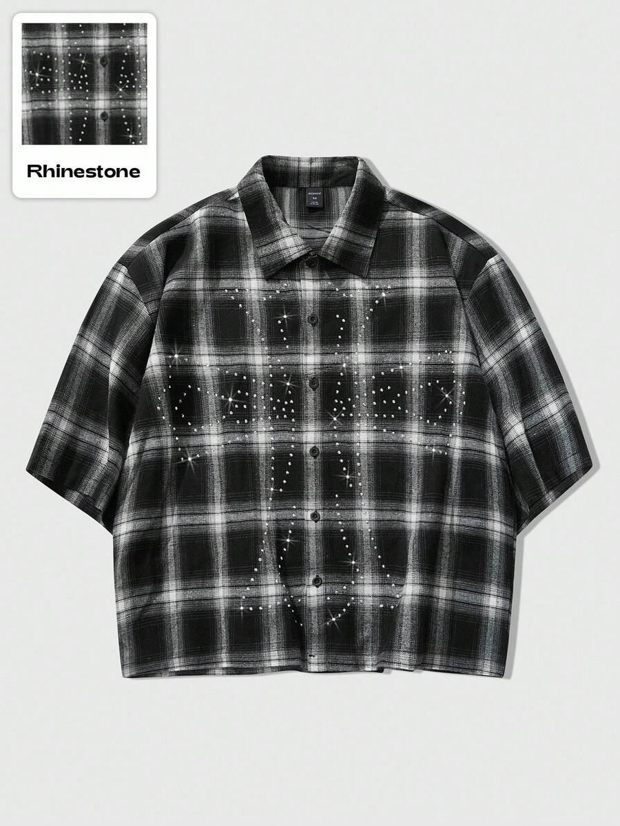 Grunge Punk قميص أكمام قصيرة مخطط بتأثير الراين ، تصميم عصري