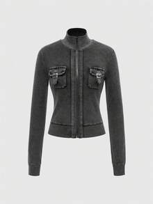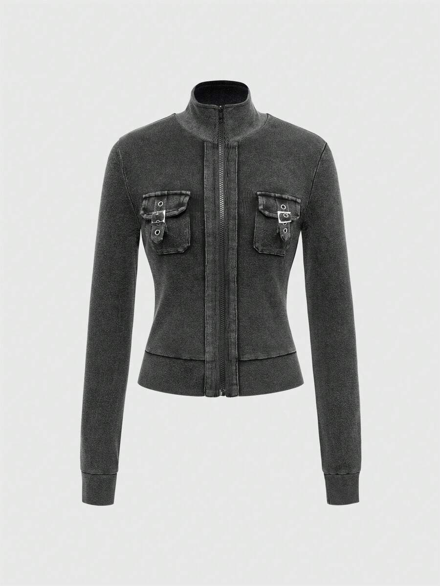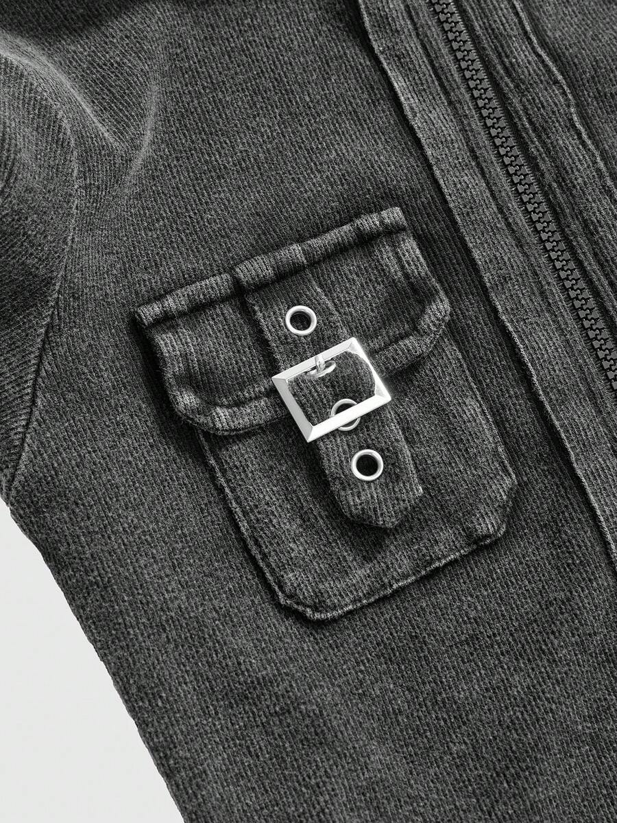Grunge Punk سروال جيوب كارجو بسحاب أمامي ضيق بأكمام طويلة