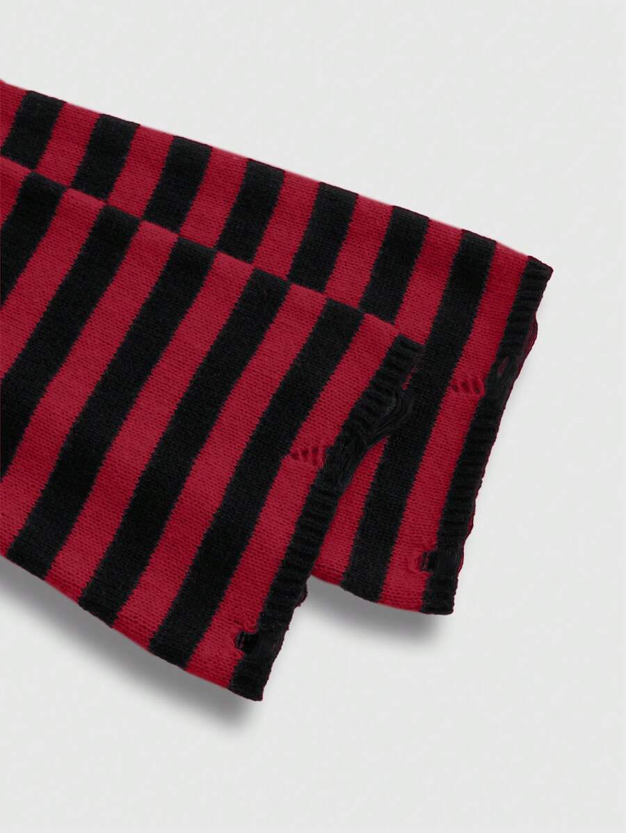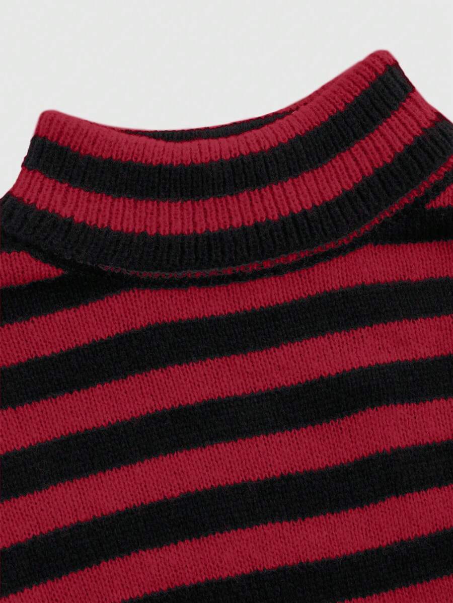 Grunge Punk كنزة صوفية قصيرة للغاية بأكمام جرس مخططة باللون الأحمر والأسود ذات ياقة عالية للنساء