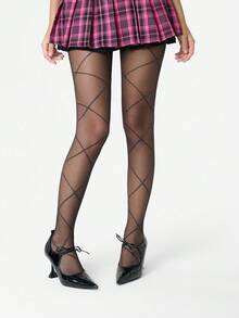 Grunge Punk جوارب طويلة/جوارب نسائية ذات نمط ماسي
