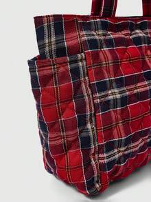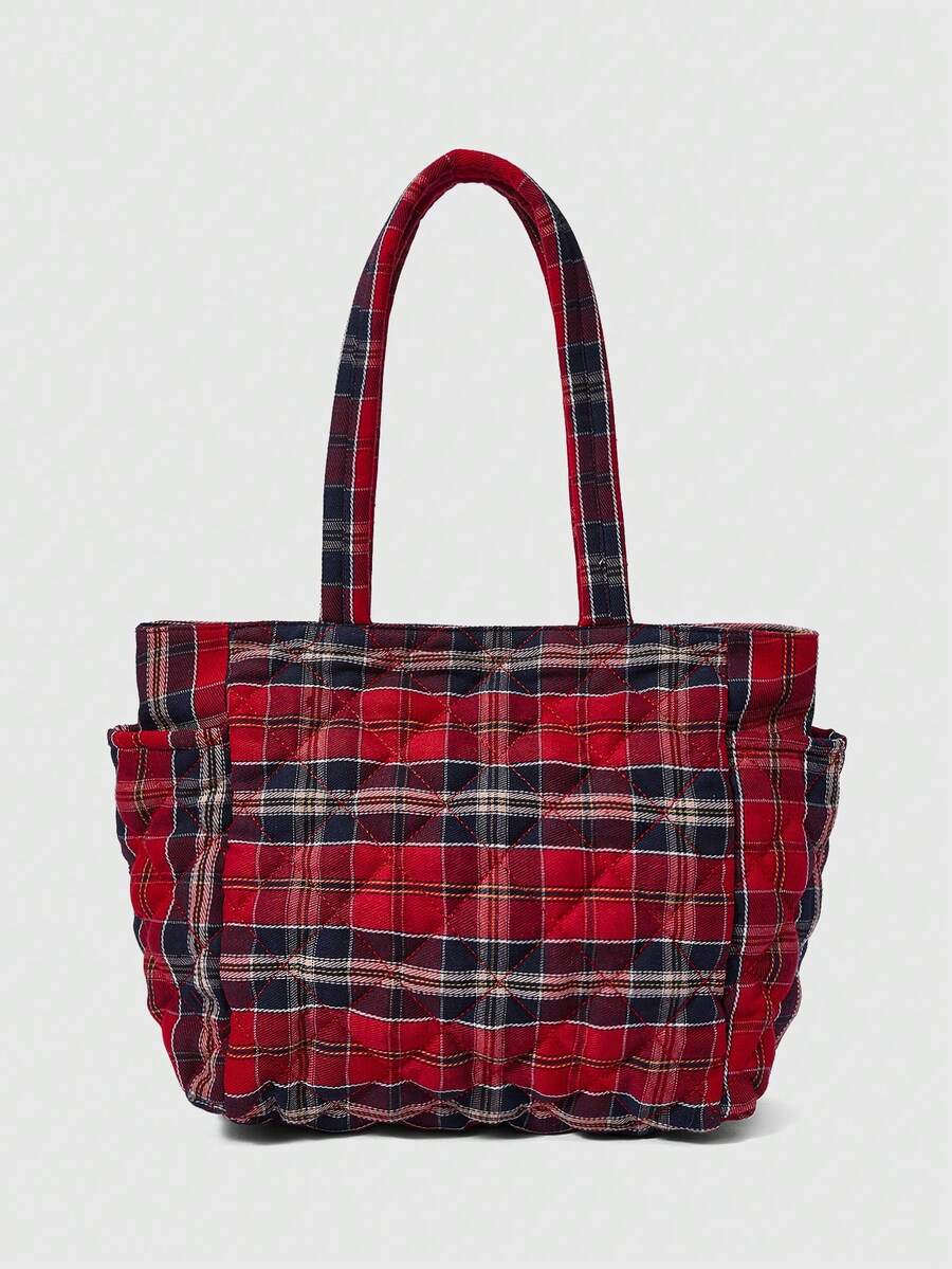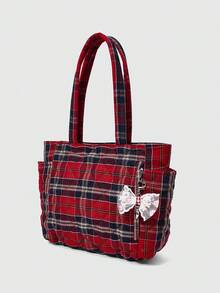 Grunge Punk حقيبة كتف كاجوال ذات سعة كبيرة بطبعة مربعات للنساء للتنقل اليومي