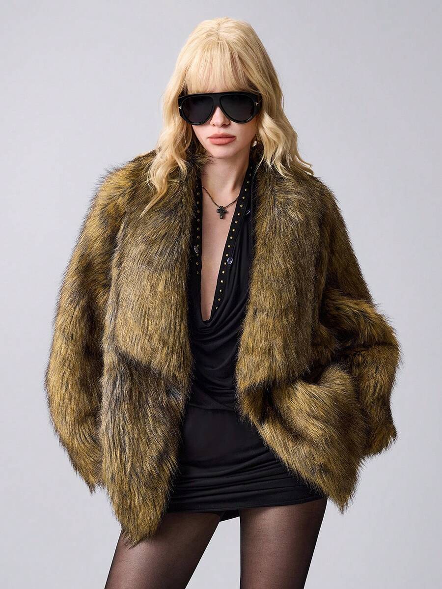 Grunge Punk معطف فرو اصطناعي عصري من طراز Y2K الألفية، خريف/شتاء