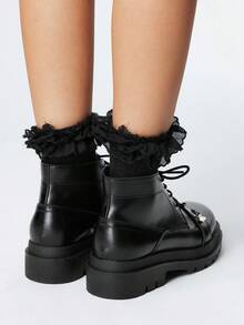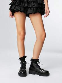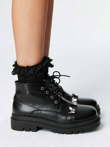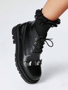 Grunge Punk بوت بوت جوتية للنساء بتصميم فراشة، ذات كعب سميك مدبب من جلد البولي يوريثان باللون الأسود، مناسبة للحفلات والاستخدام اليومي والأنماط الكاجوال، وحفلات الهالوين