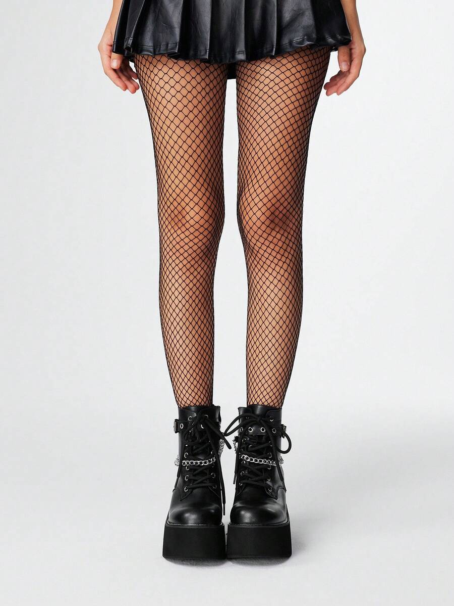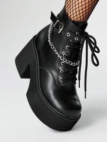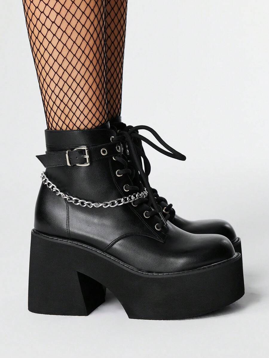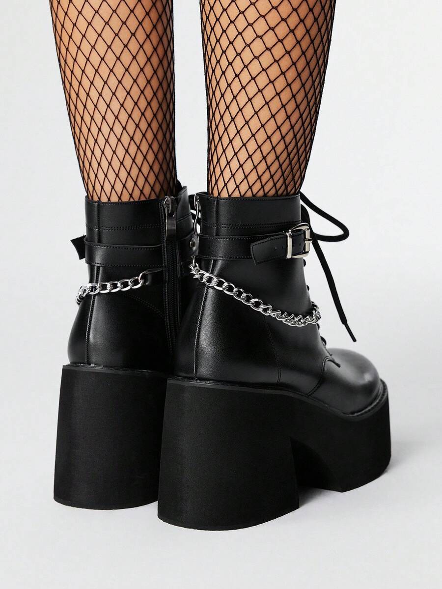 Grunge Punk بوت كاحل سوداء بكعب سميك بطراز بانك للنساء