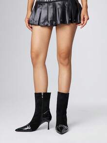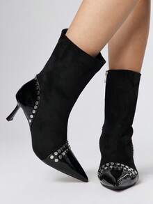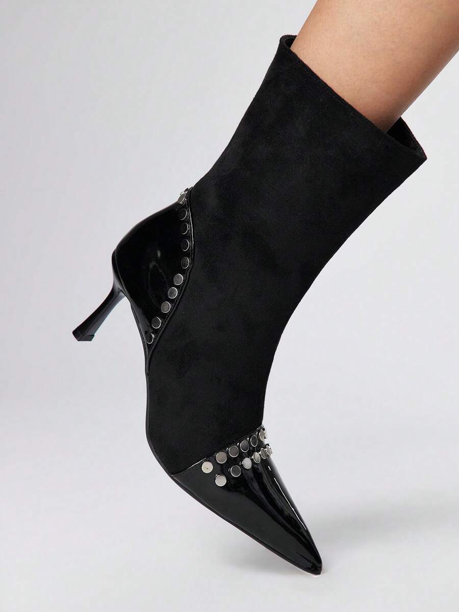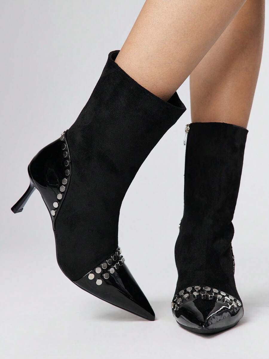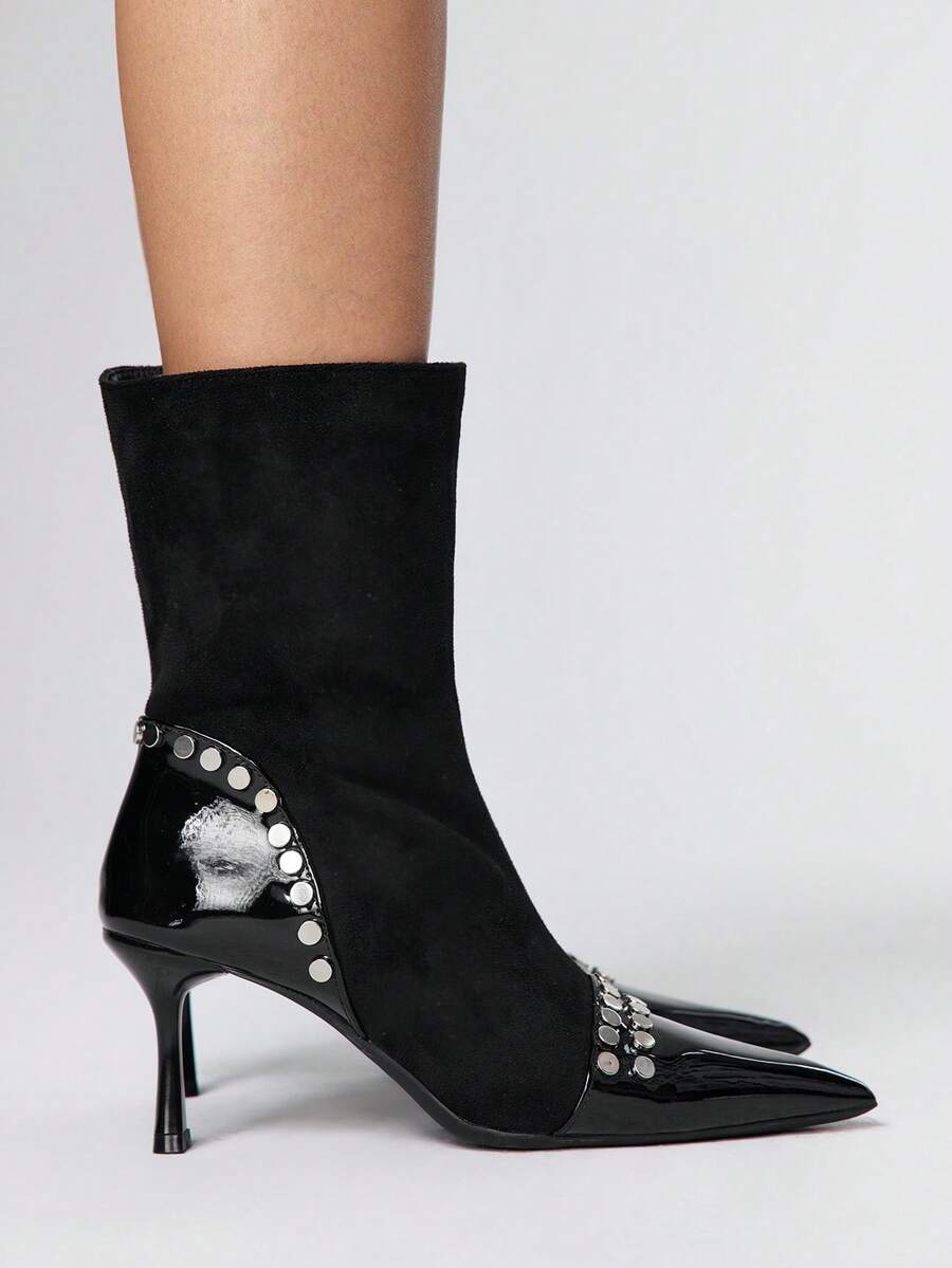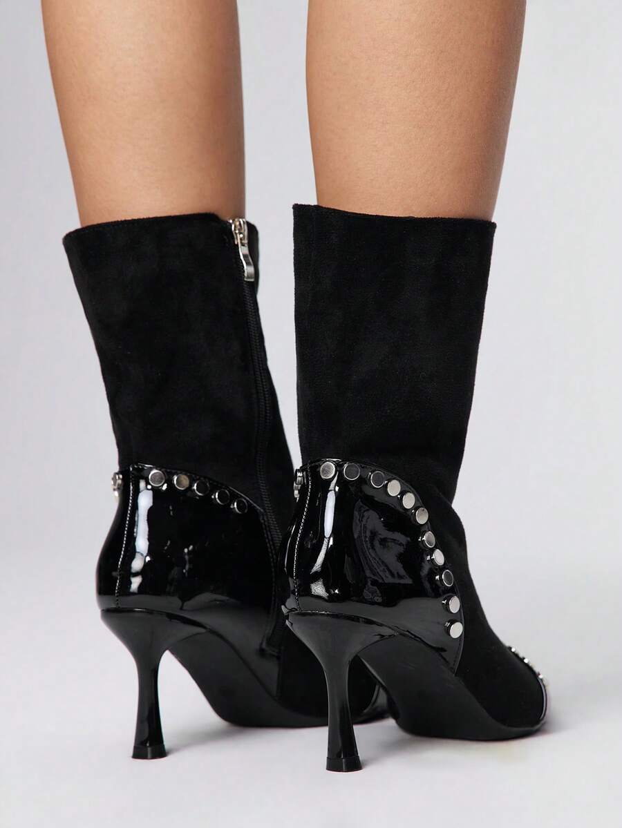 Grunge Punk بوت كاحل نسائية ذات كعب عالي مدبب مزينة بالدبابيس