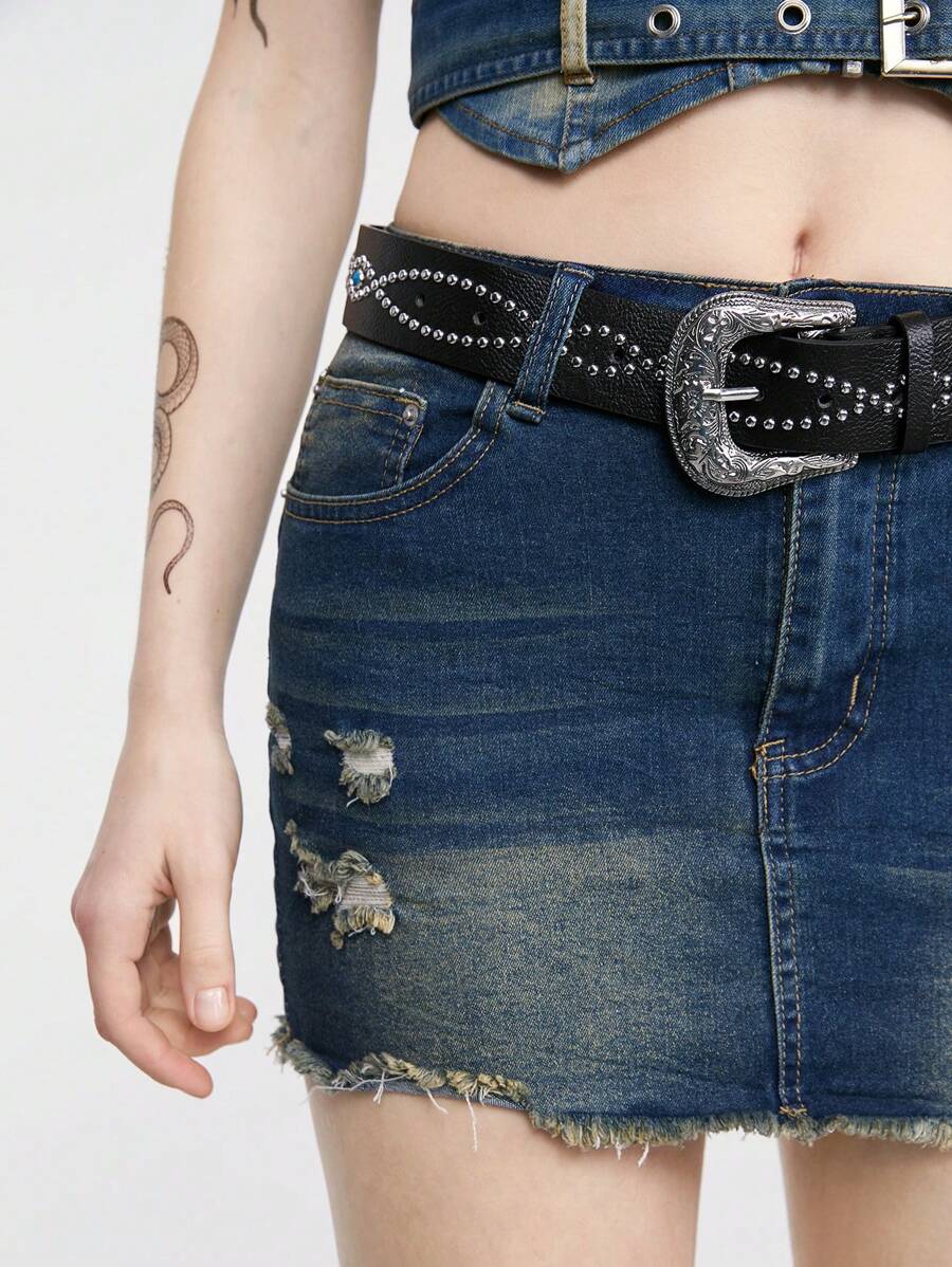 Grunge Punk حزام مزين بدبابيس بنمط غربي وكاوبوي بطراز بانك للنساء