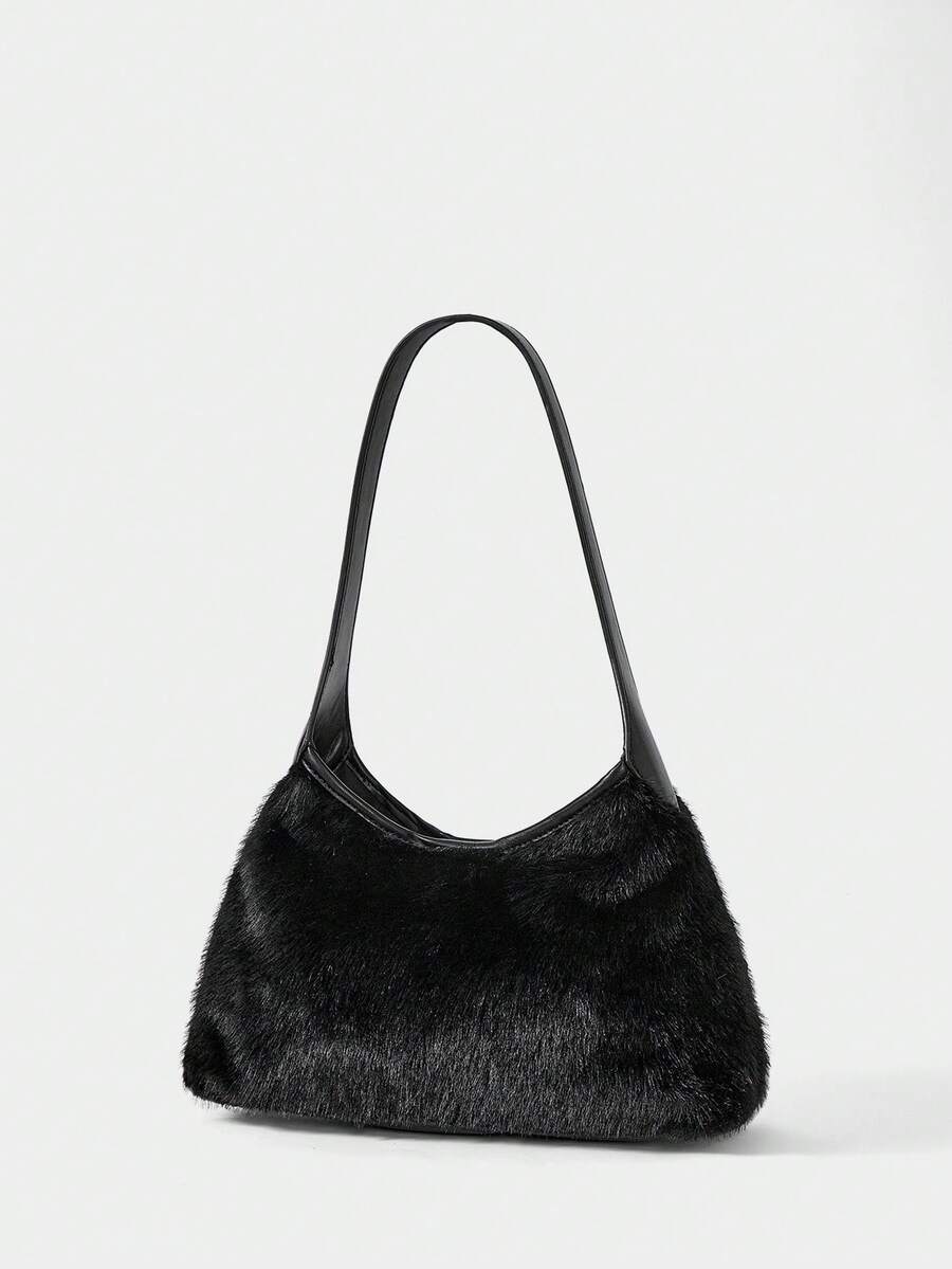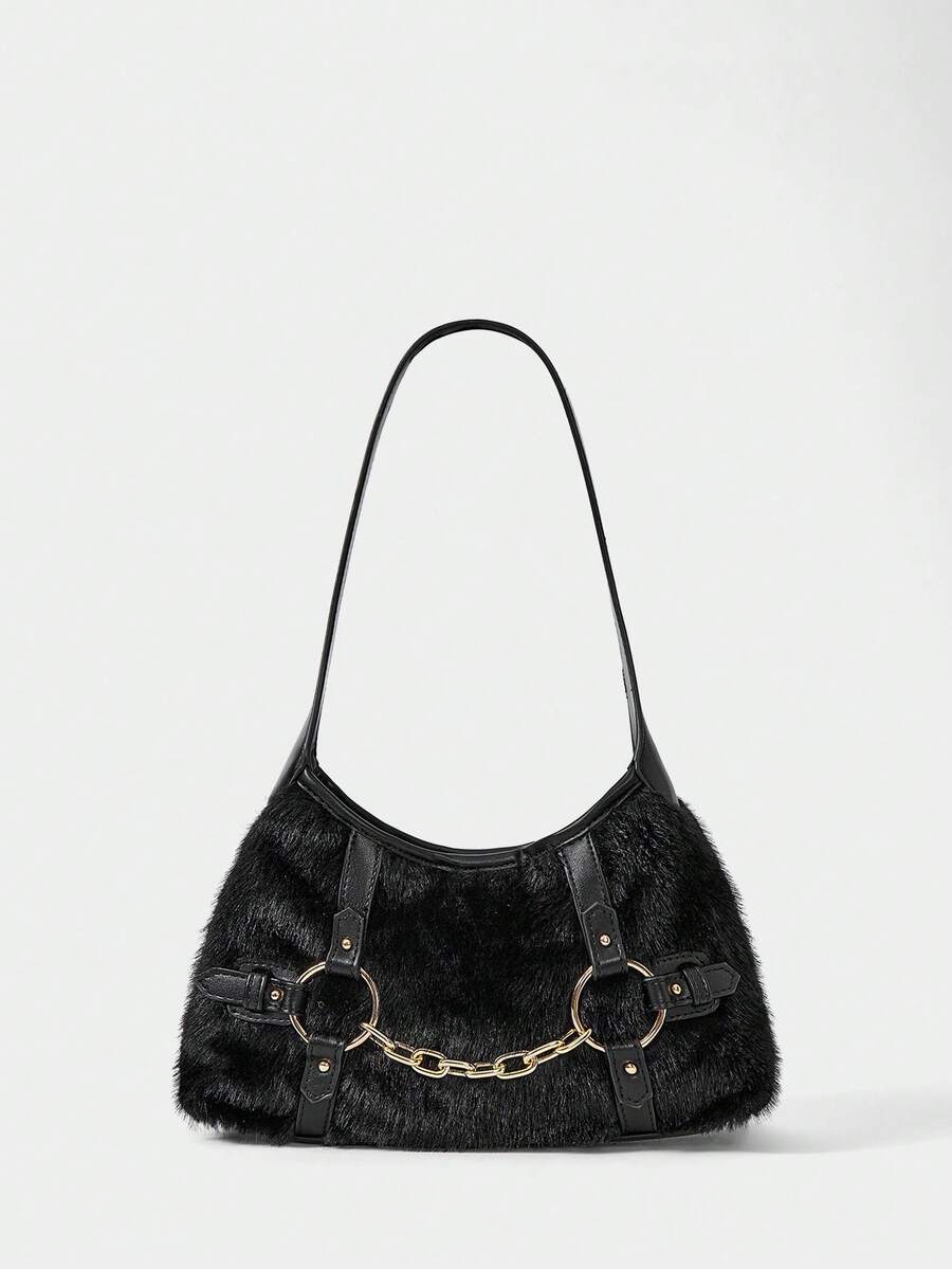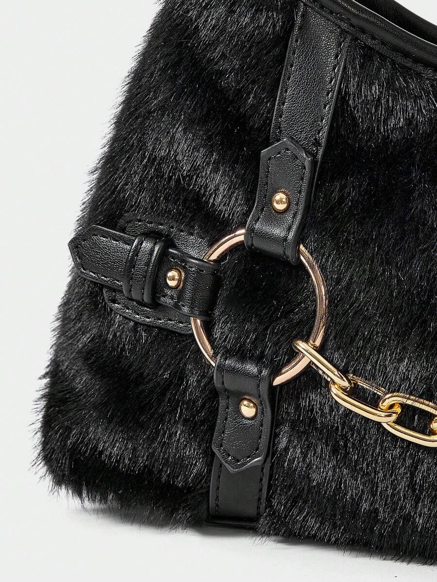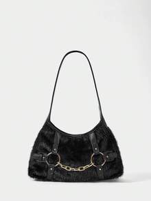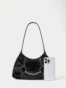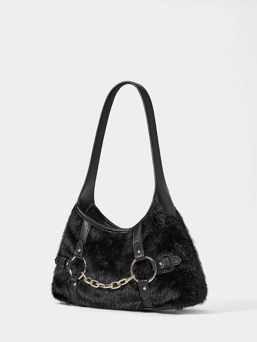 Grunge Punk حقيبة كتف مزخرفة بسلسلة من الفرو الاصطناعي، حقيبة هوبو فضفاضة بطراز بانك جوثيك، حقيبة يد بطراز الشارع