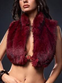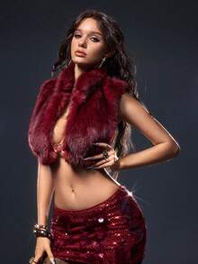 Grunge Punk توب قصير بحزام رقبة مكشوف الظهر فرو Y2K جذاب