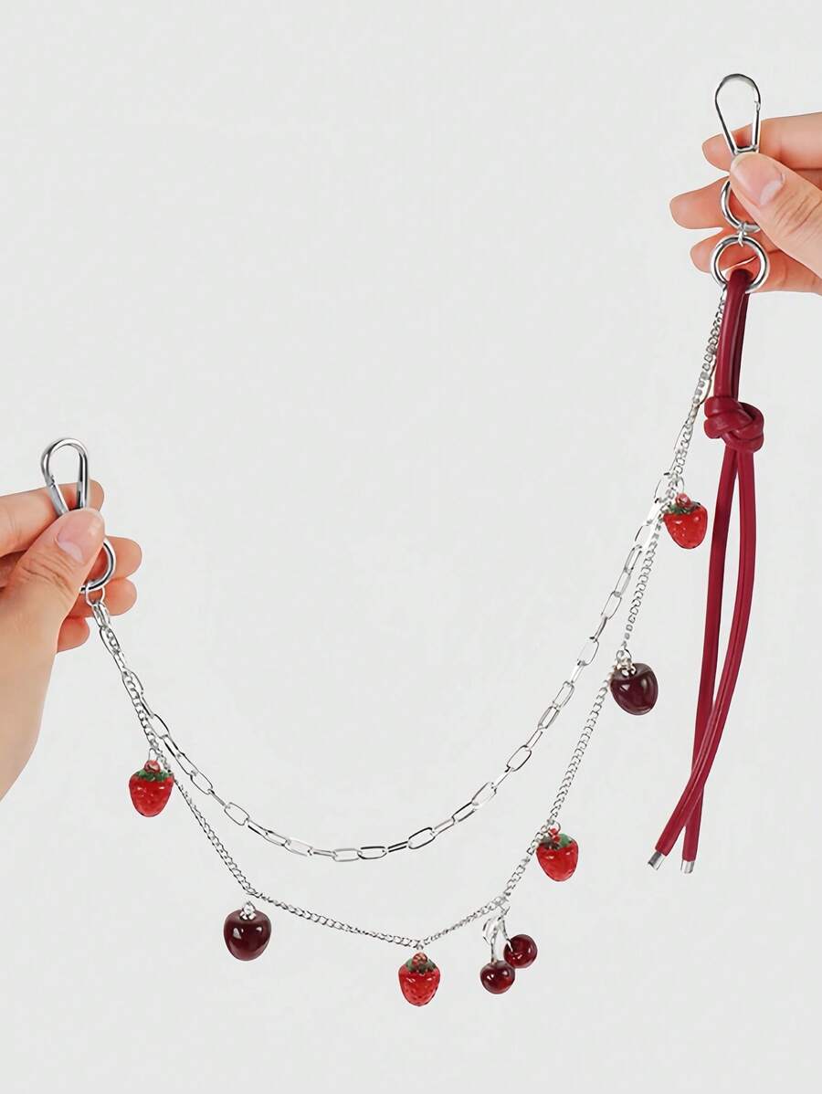 Grunge Punk سلسلة معدنية كتم الحقيبة بأسلوب Y2K الشائع، سلسلة جلد الكرز والفراولة للبنطلون