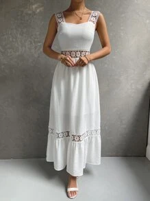 فستان ماكسي بإضافة دانتيل جيبور وكشكشة على الأطراف للنساء، ملابس شاطئ وإجازة